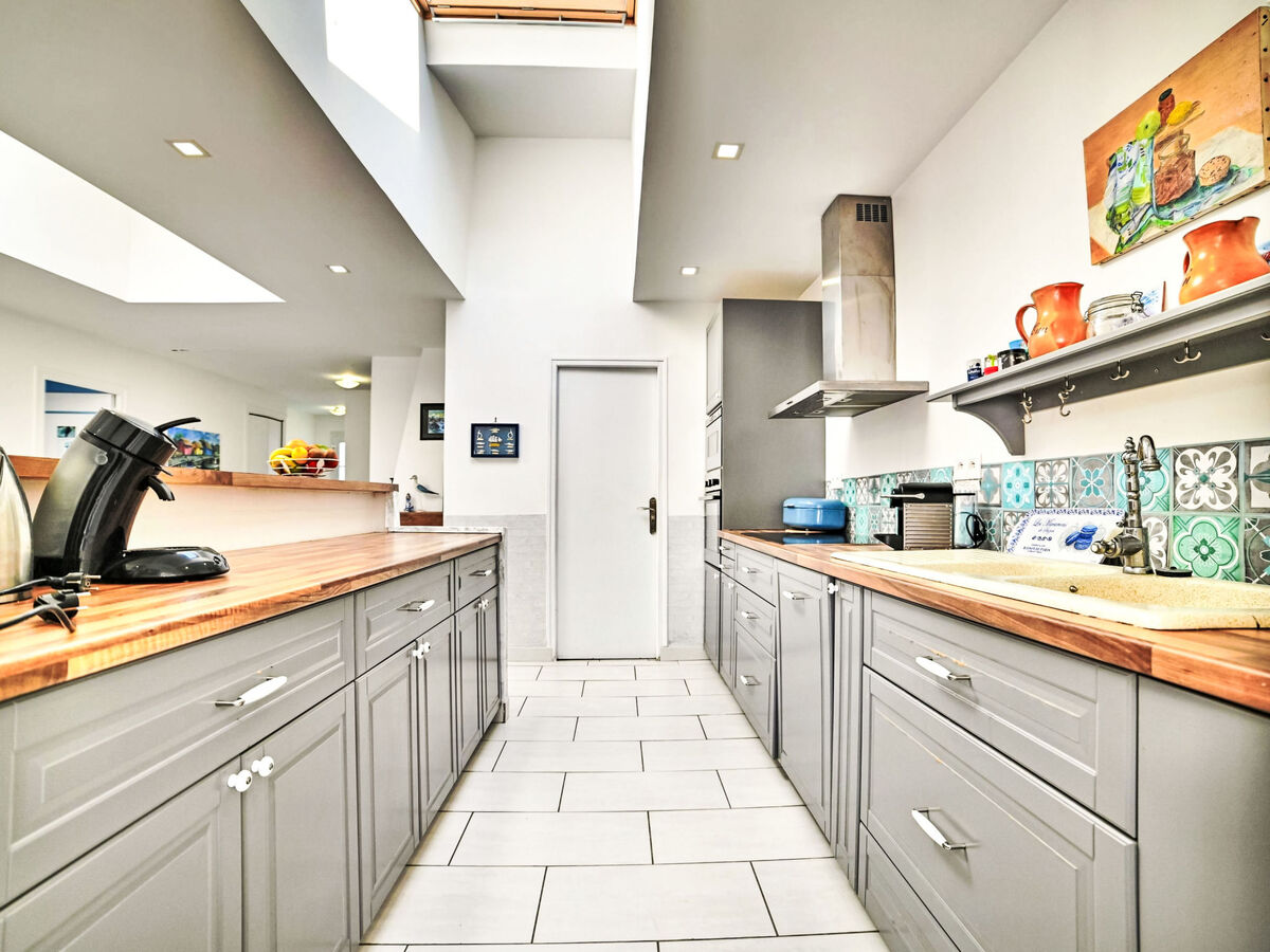 Grande cuisine ouverte (four, lave-vaisselle, Poêle à gaz, 3 feux, grille-pain, bouilloire électrique, micro-ondes, cafetière électrique).