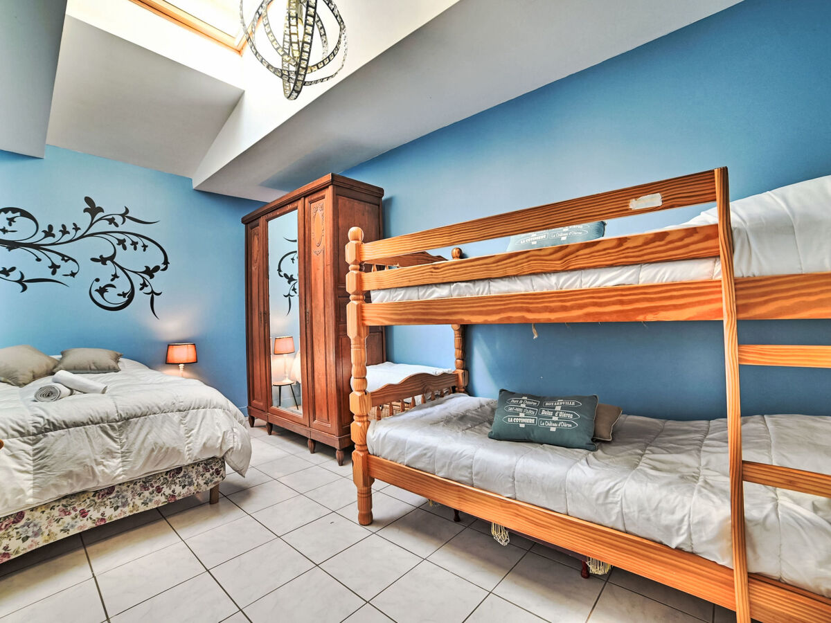 1 chambre avec 1 x 1 lits superposés (90 cm, longueur 200 cm), 1 grand-lit (1 x 140 cm, longueur 190 cm).