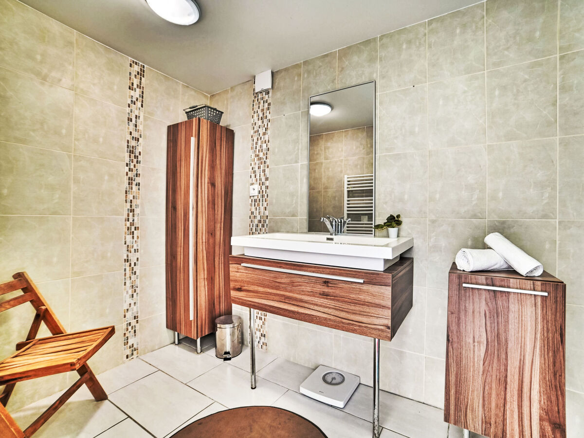 À l'étage supérieur: 1 chambre avec 1 grand-lit (1 x 160 cm, longueur 200 cm).