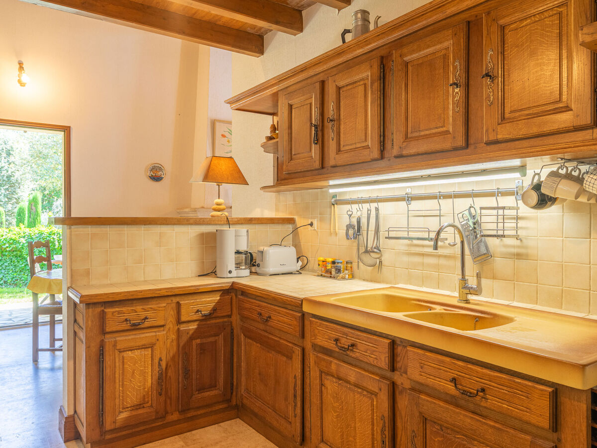 Cuisine ouverte (four, lave-vaisselle, 4 plaques vitrocéramiques, grille-pain, bouilloire électrique, micro-ondes, cafetière électrique).