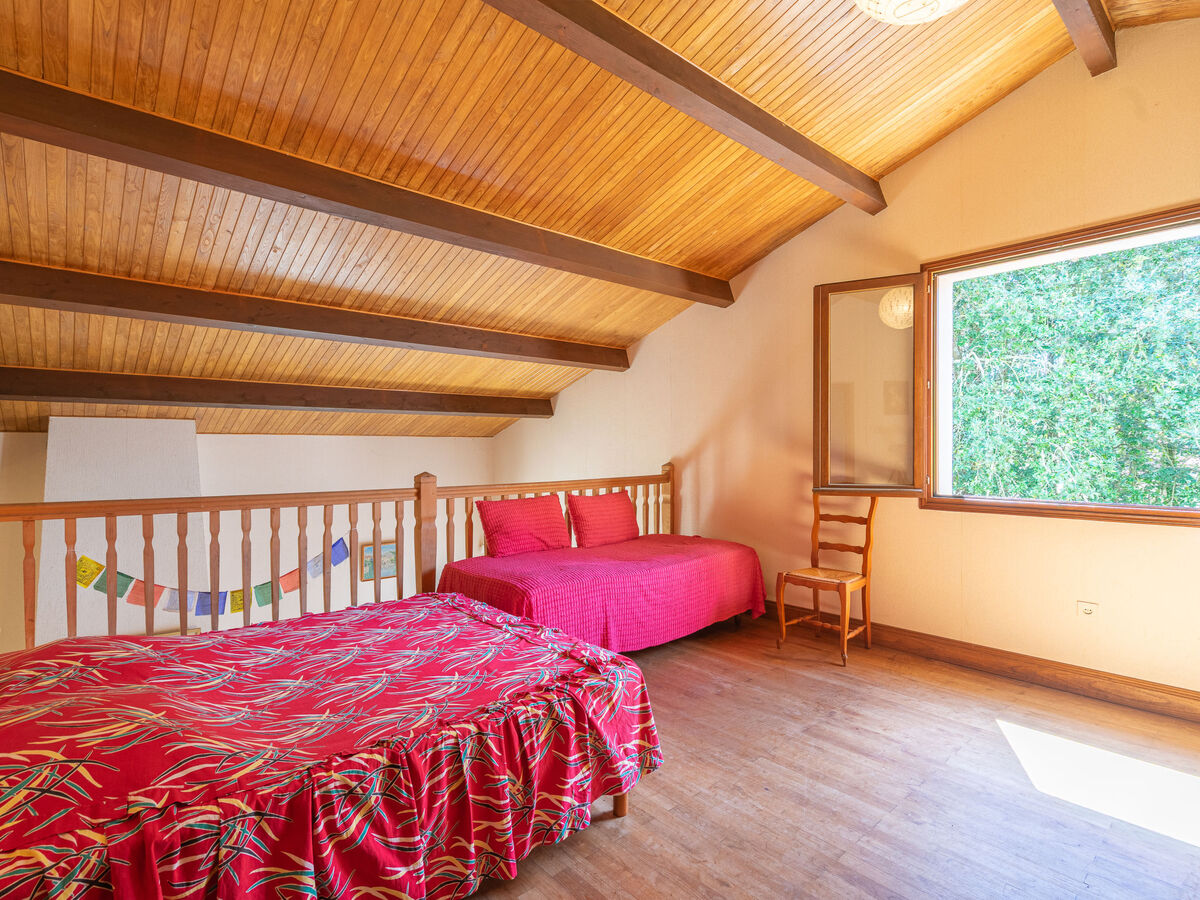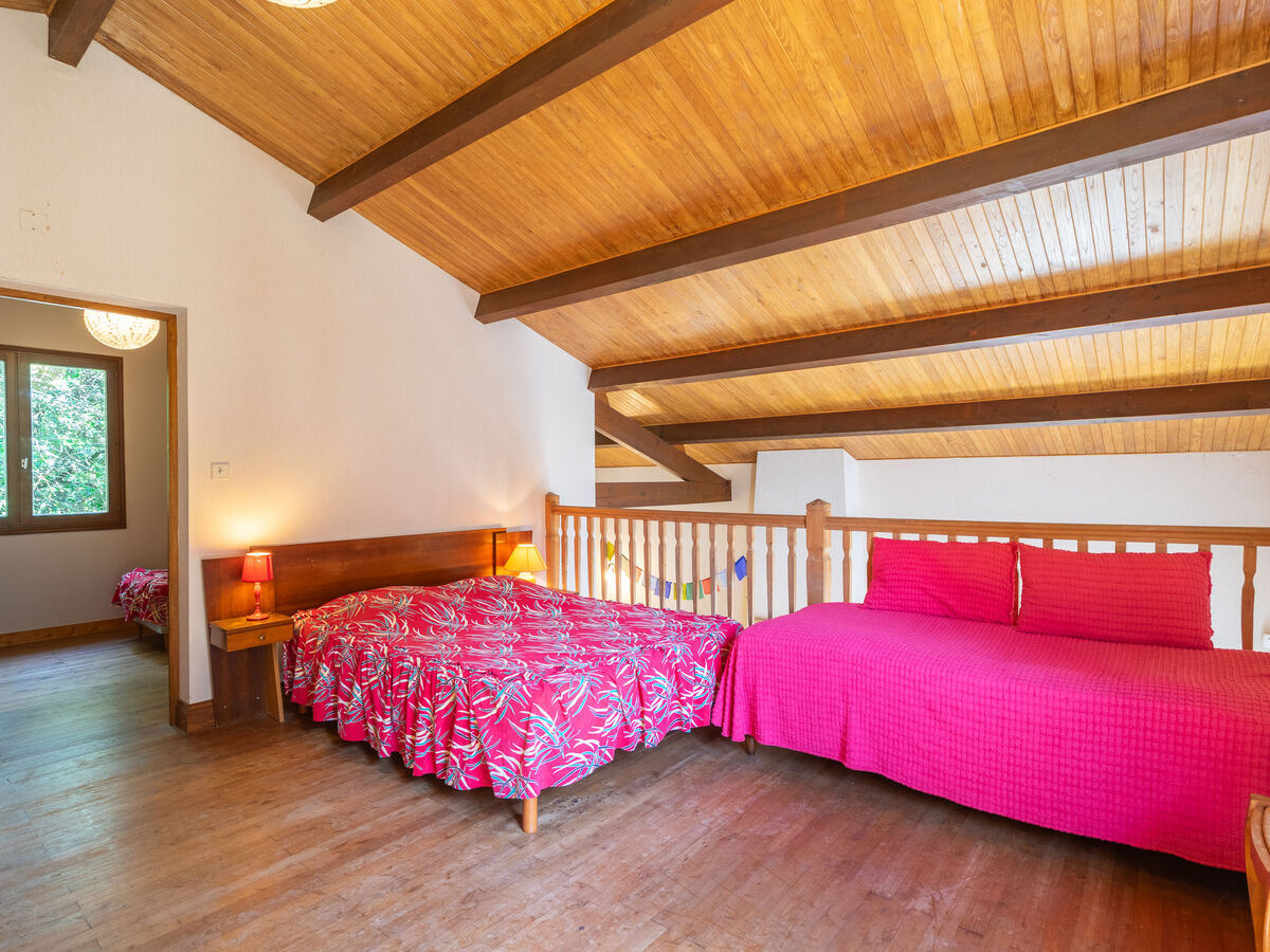 Galerie mansardée avec 1 grand-lit (1 x 140 cm, longueur 190 cm).