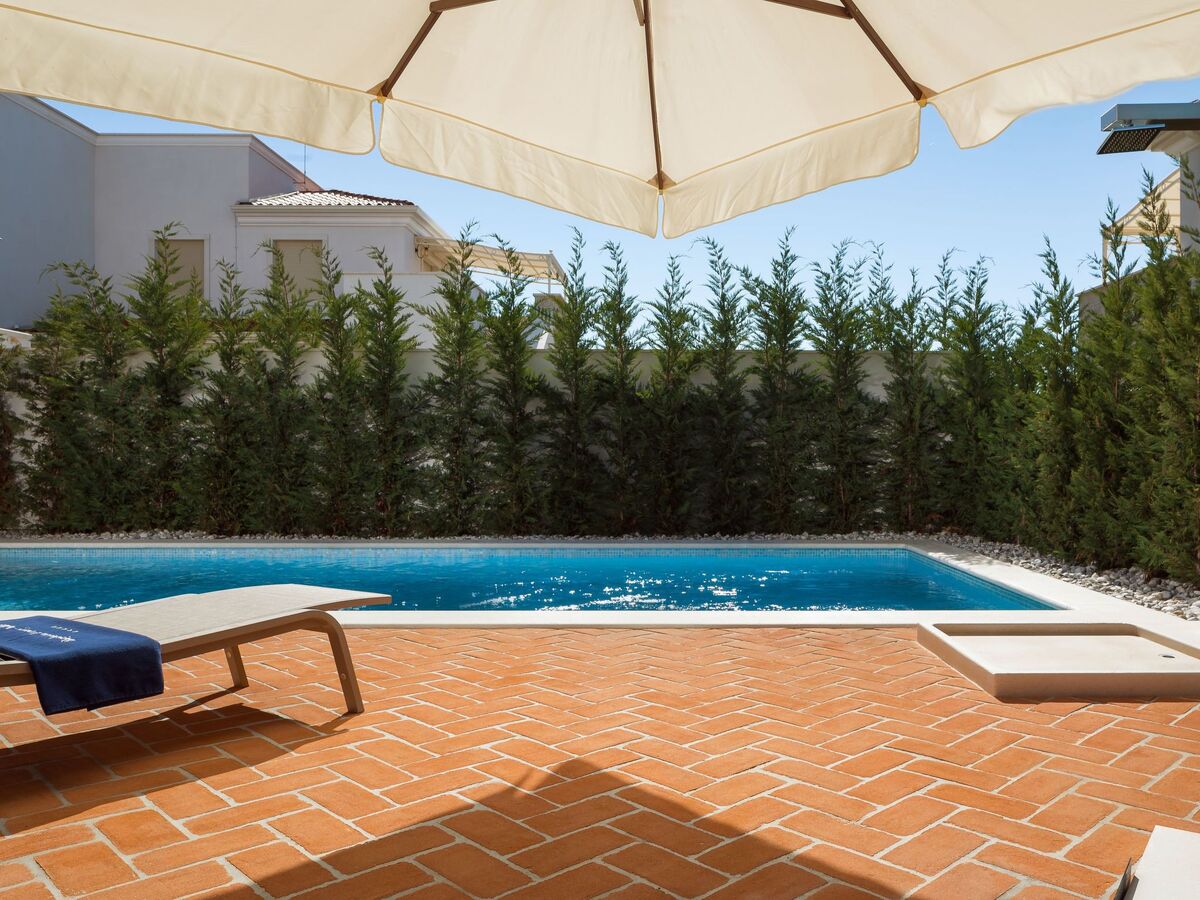A usage privé: terrain 600 m2 (clôturé), piscine rectangulaire, chauffée (7 x 7 m, profondeur 130 cm, disponibilité saisonnière: 01.Mai.