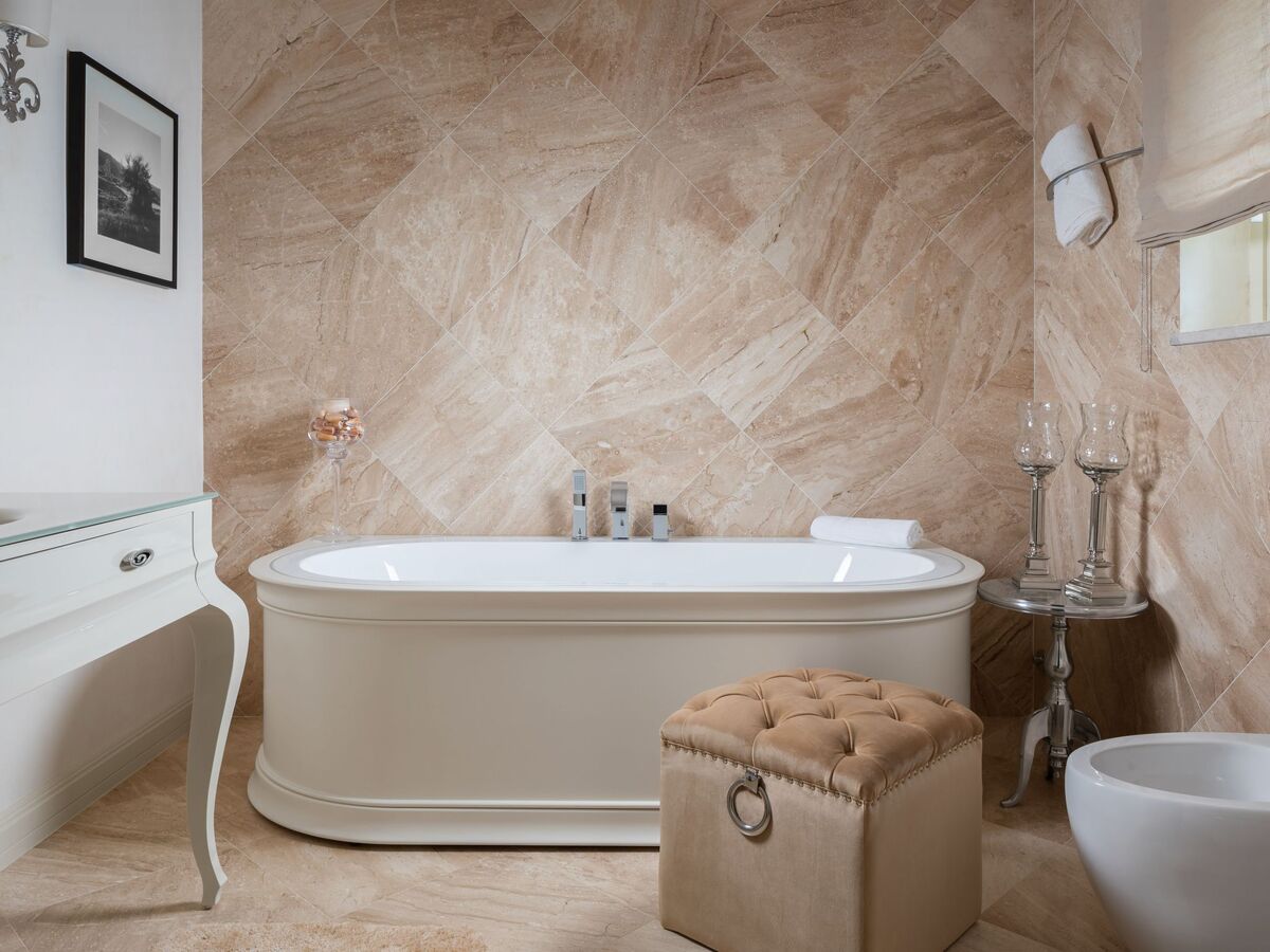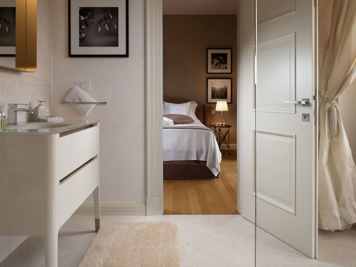 2 chambres, chaque chambre avec: 1 grand-lit (180 cm, longueur 200 cm), douche/bidet/WC et air-conditionné.