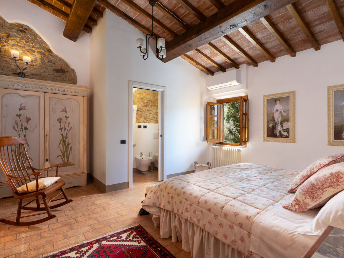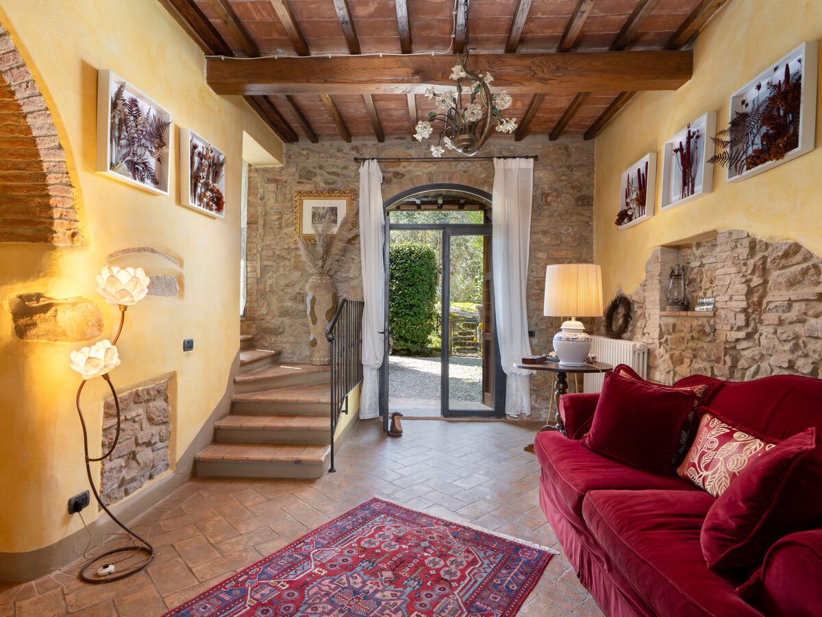 Ferme restaurée dans la tradition toscane, en position panoramique entre les collines de Sienne et de Florence.