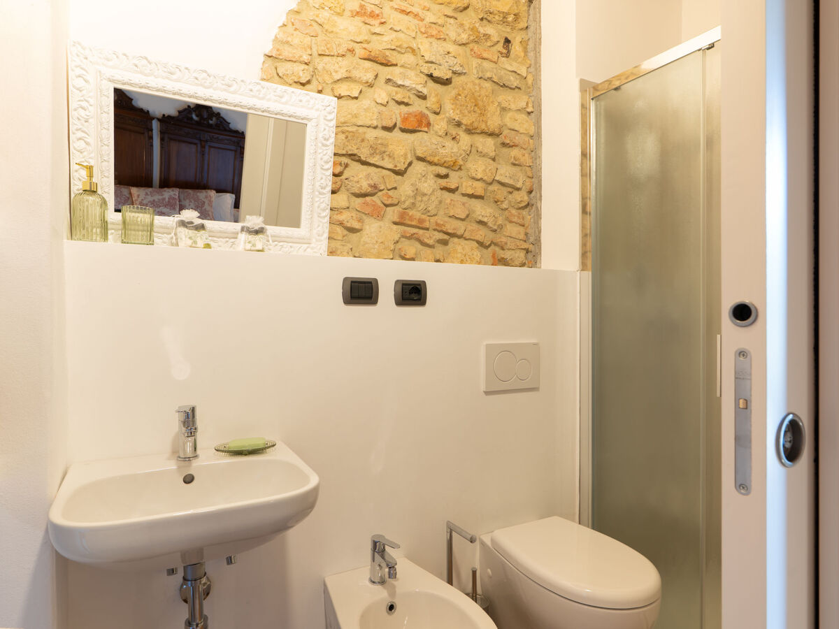 1 chambre double avec douche/bidet/WC, air-conditionné et chauffage à air chaud.