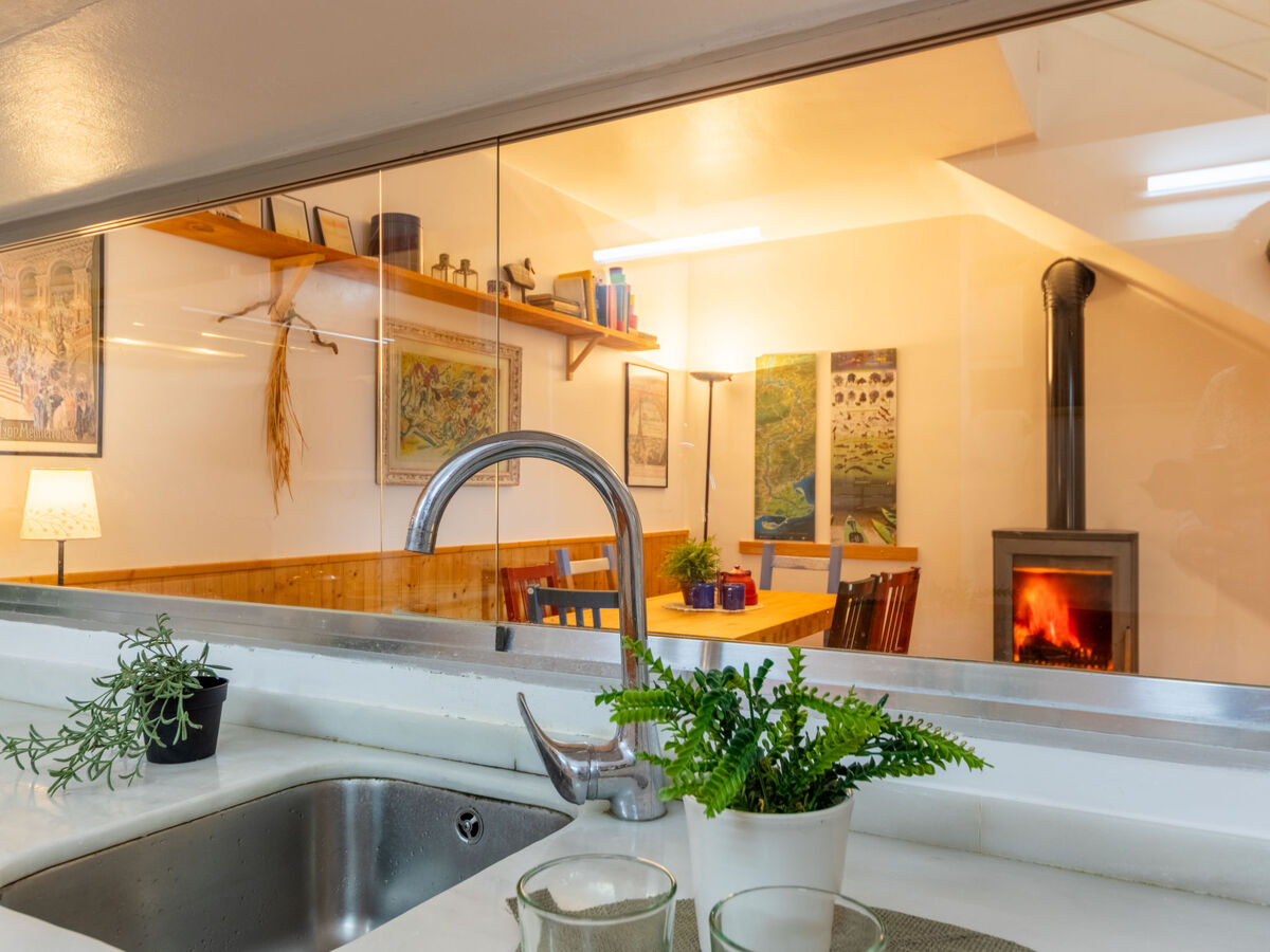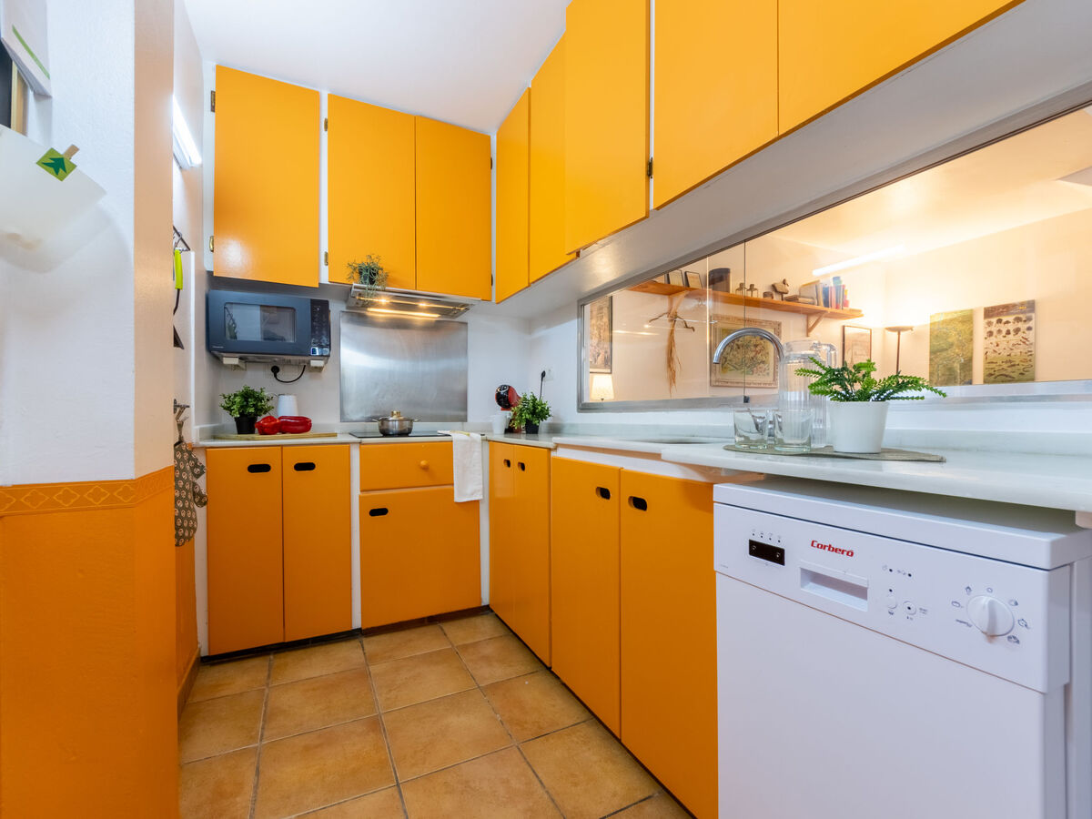 Cuisine ouverte (lave-vaisselle, 4 plaques vitrocéramiques, grille-pain, bouilloire électrique, micro-ondes, gril, cafetière électrique).
