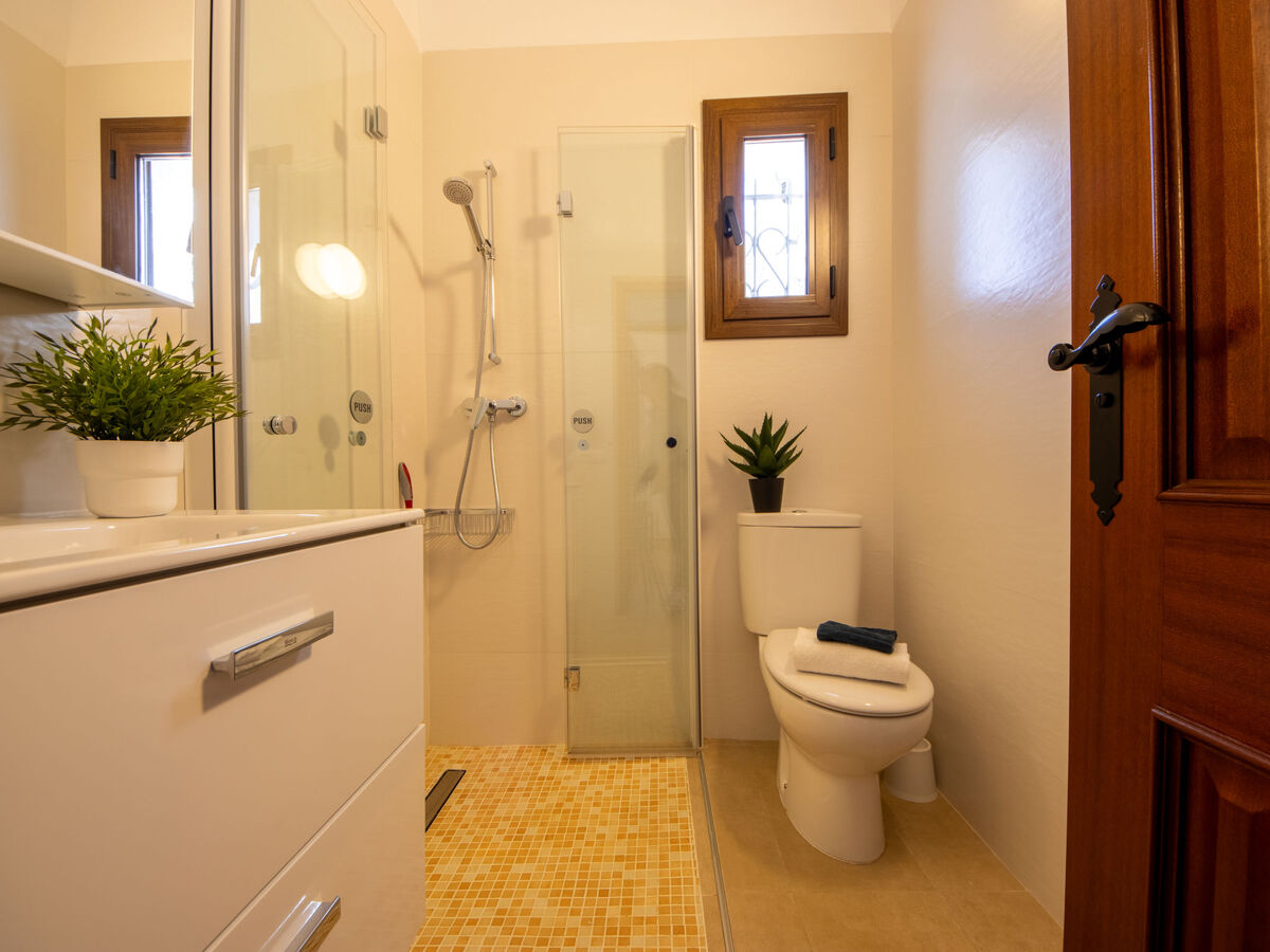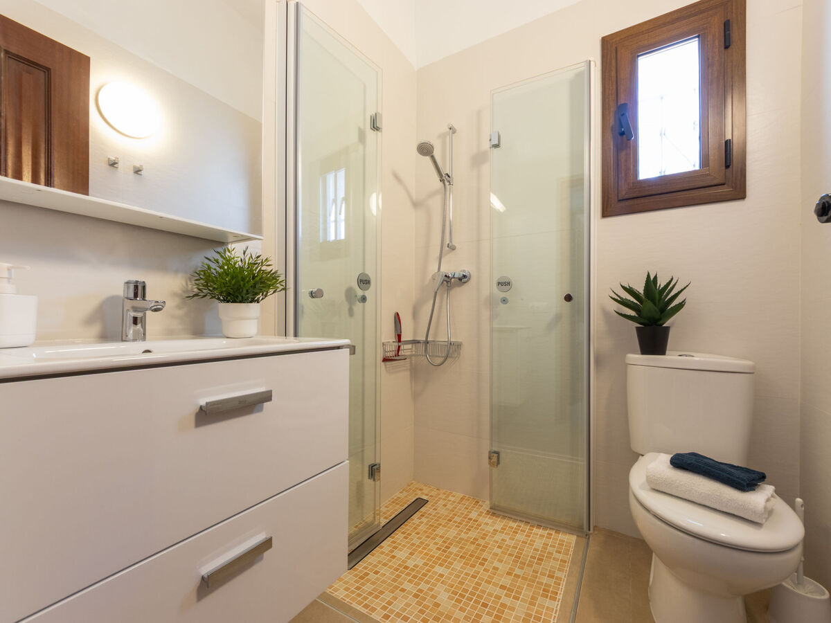 WC dans l'espace piscine, douche extérieure, jardinet, meubles de jardin, barbecue.