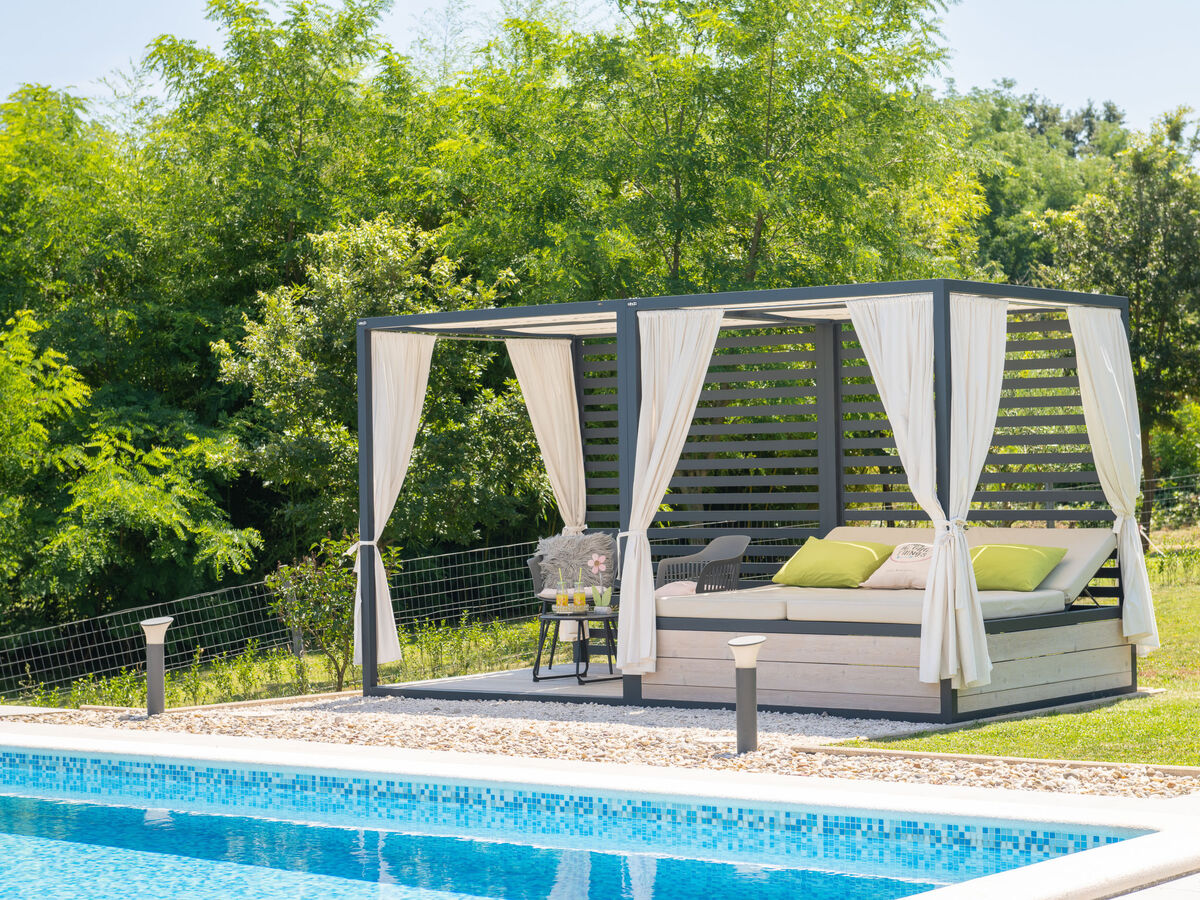 Cuisine extérieure (plaque de cuisson, réfrigérateur).