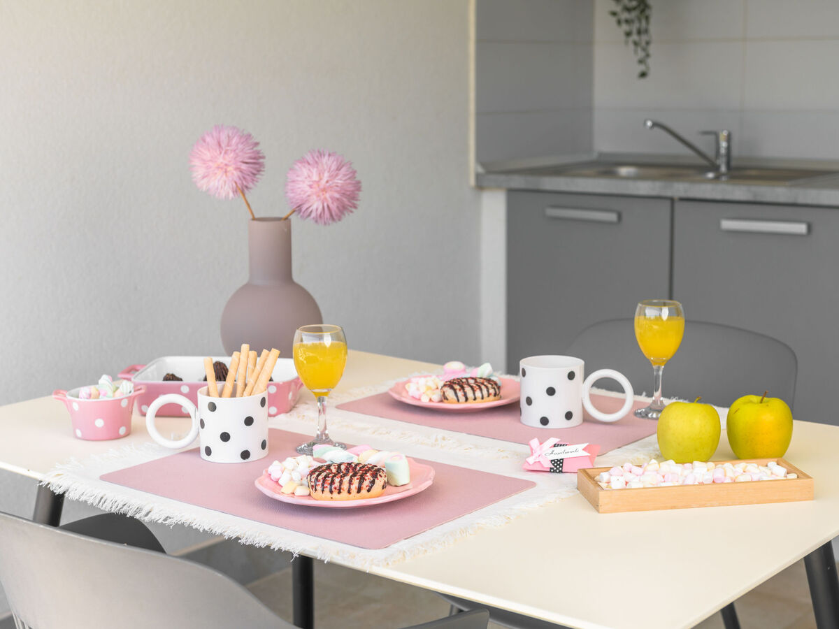 Aménagement agréable et romantique: séjour/salle à manger avec TV (satellite) et air-conditionné.