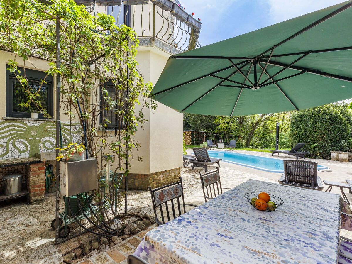 Douche extérieure, bain à remous , terrasse (30 m2), meubles de jardin, barbecue, entretien de la piscine par le propriétaire/jardinier.