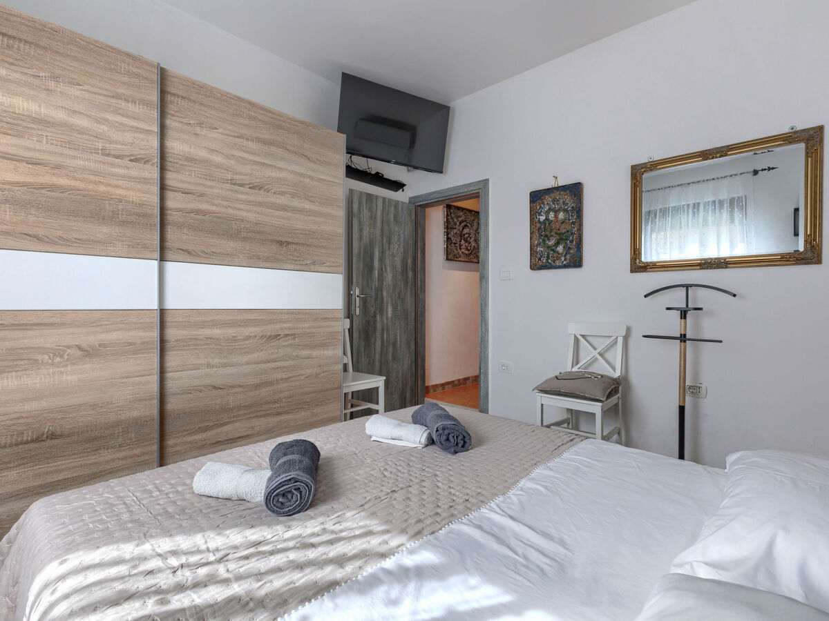 1 chambre avec 1 grand-lit (160 cm, longueur 200 cm), TV (satellite) et air-conditionné.