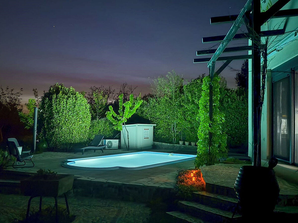 A usage privé: terrain 600 m2, jardin, piscine (24 m2, profondeur 155 cm, disponibilité saisonnière: 01.Mai.