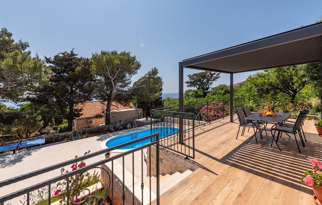Profitez d'une pause idyllique dans cette charmante maison de vacances avec piscine et vue sur la mer à proximité de la plage.