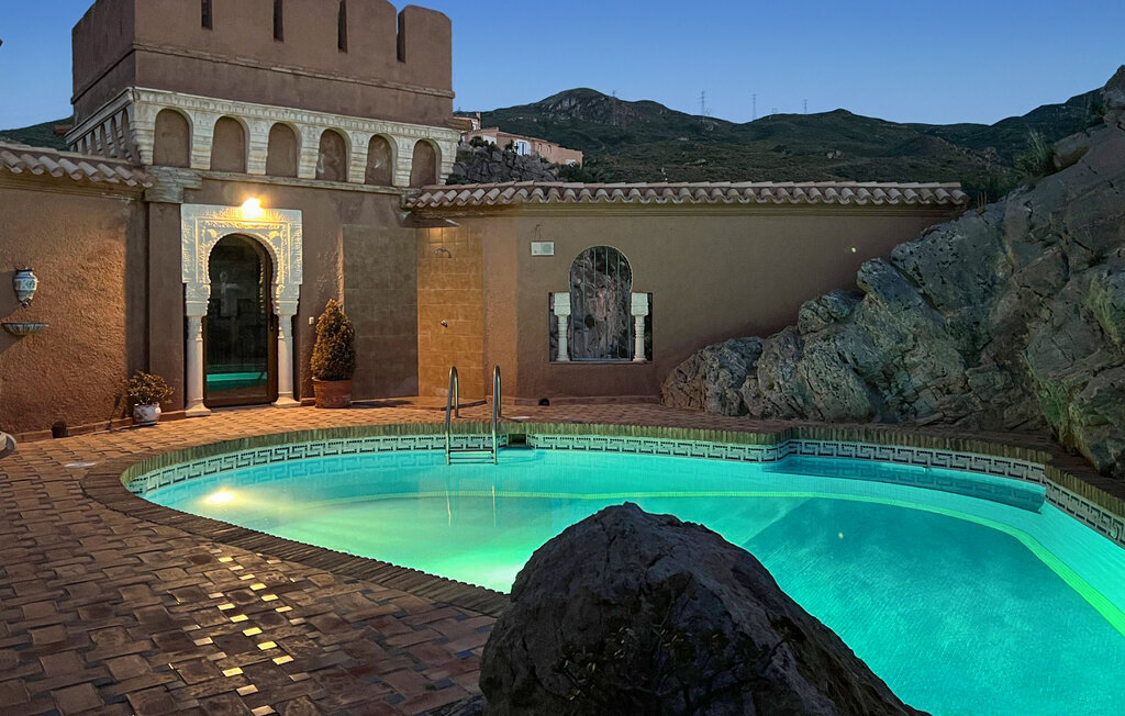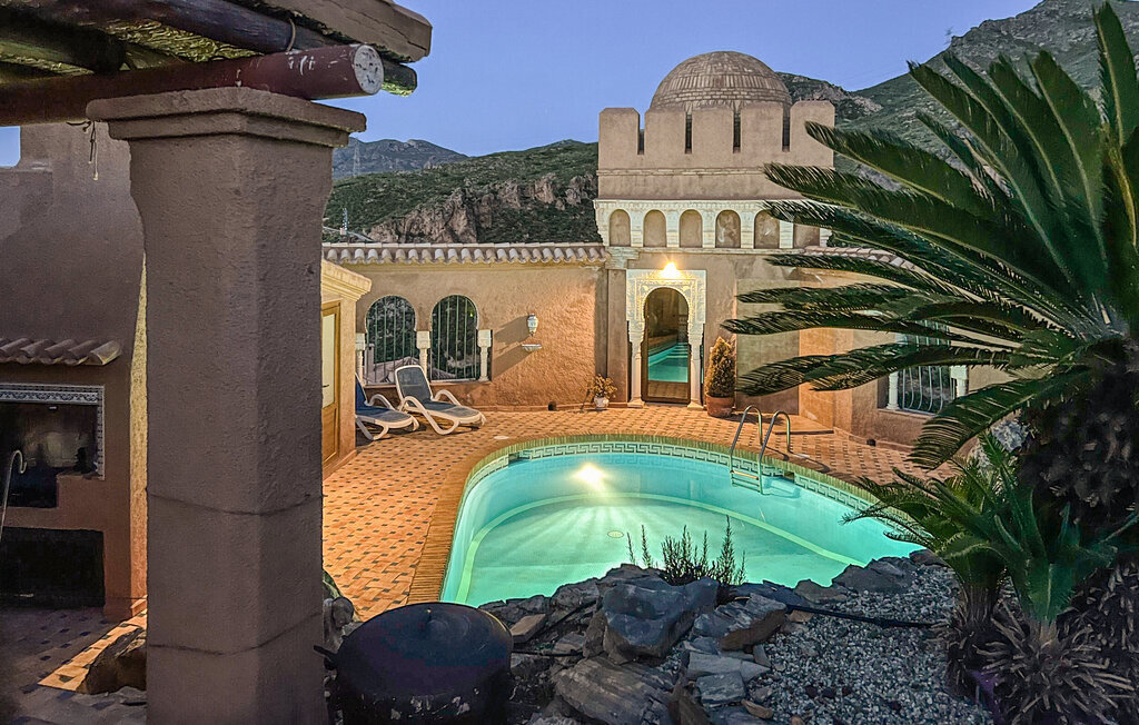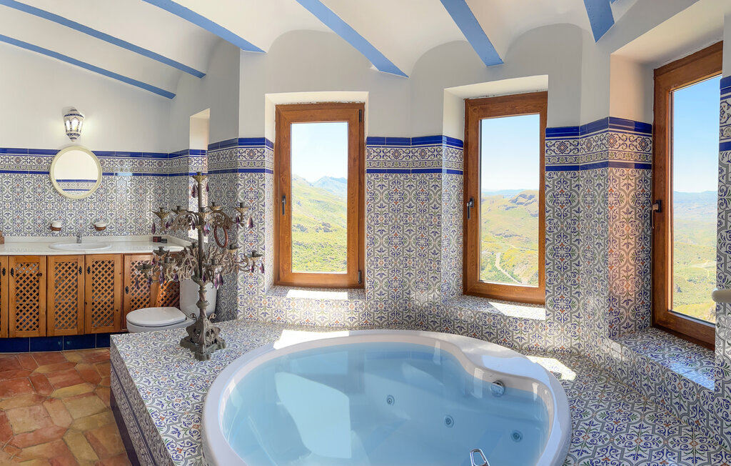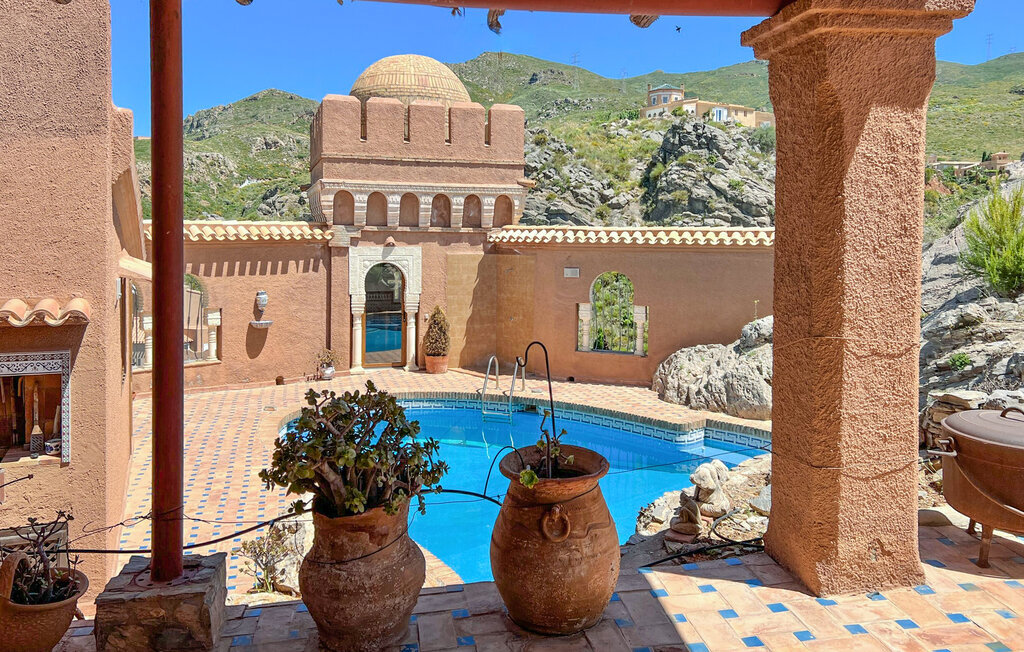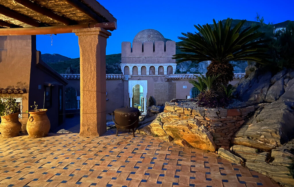 Niché dans le paysage montagneux spectaculaire près d'El Cortijo Grande, cet imposant domicile de style mauresque vous attend, dans lequel vous pourrez vous plonger dans une ambiance féerique, loin du quotidien. Installez-vous confortablement dans les pièces lumineuses décorées de détails traditionnels, préparez de délicieuses tapas, plongez-vous dans une bonne lecture à votre place préférée ou profitez de la vue en prenant un bain bienfaisant dans la baignoire.