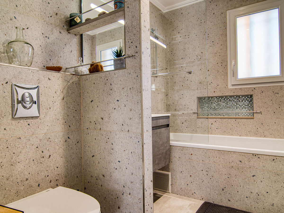 1 chambre avec 1 grand-lit (160 cm, longueur 200 cm), douche.
