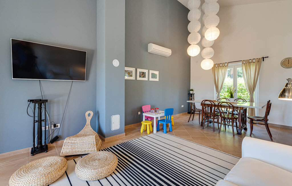 À l'extérieur, la joie de vivre méditerranéenne est palpable. La piscine avec son échelle se prête aussi bien à une immersion en douceur qu'à de petits plongeons, et le vaste espace tout autour vous invite à prendre un bain de soleil, à jouer et à vous détendre. Profitez de l'espace barbecue traditionnel pour un dîner gastronomique et créatif en plein air.
