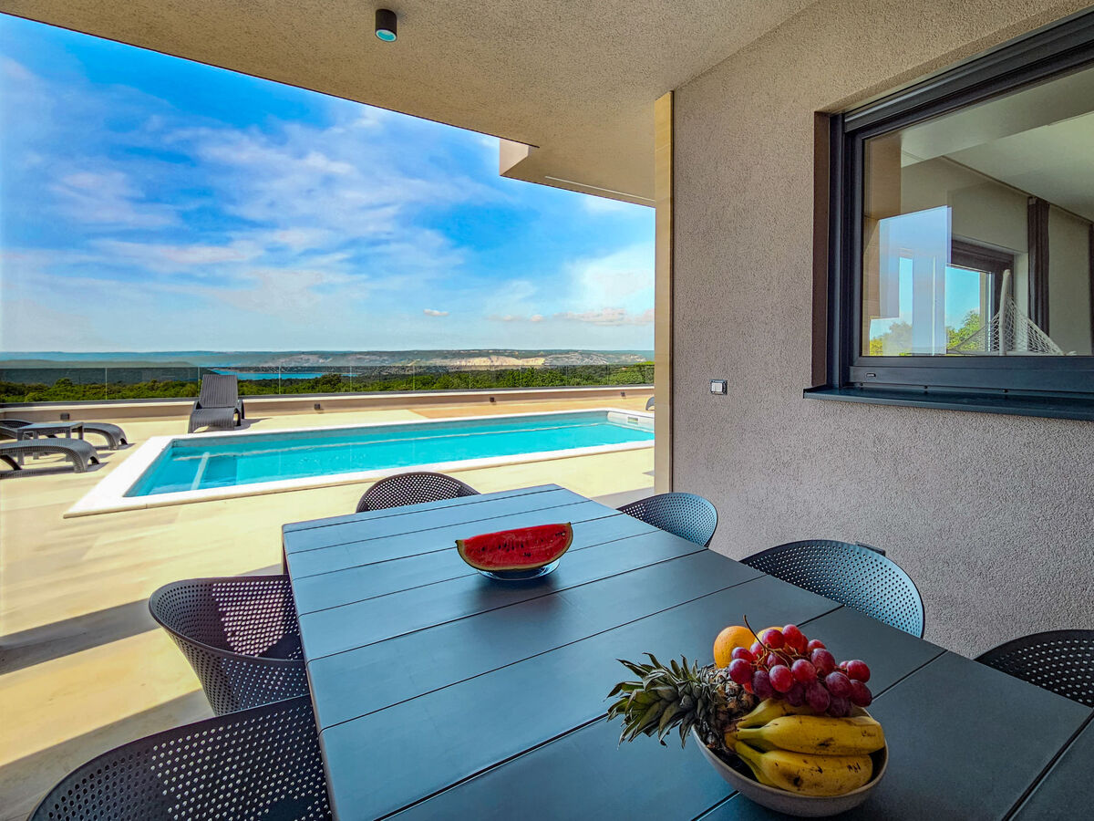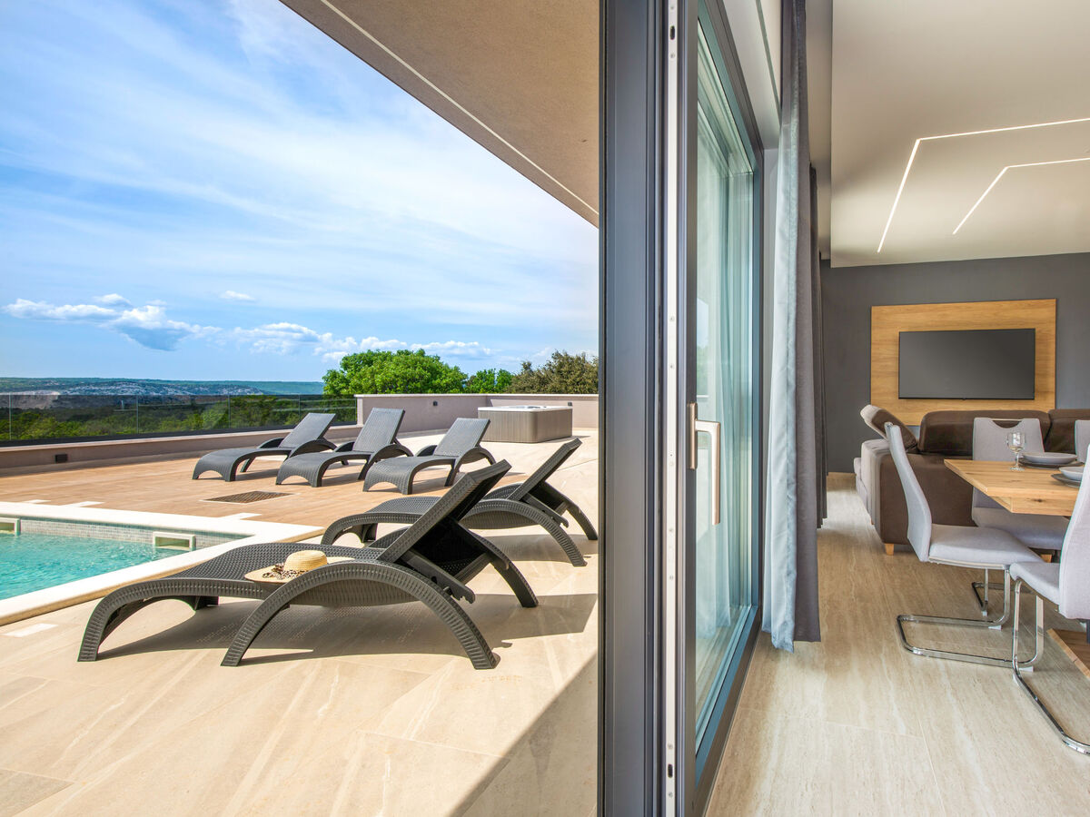 Sortie sur la terrasse, sur la piscine.