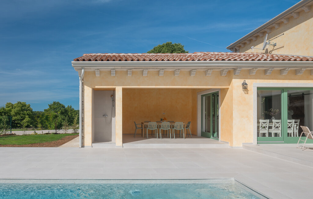 Bien-être à l'extérieur : Location de vacances disposant de chaises-longues et d'un ou plusieurs équipements tels que piscine extérieure, jacuzzi extérieur, lit à baldaquin de jardin etc...