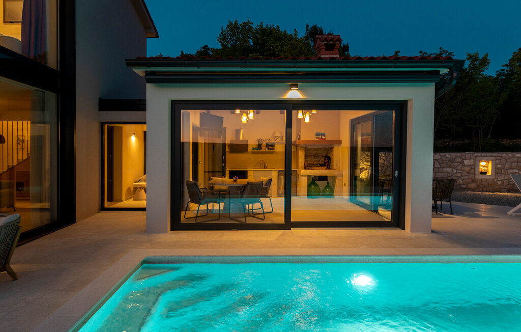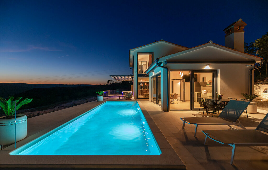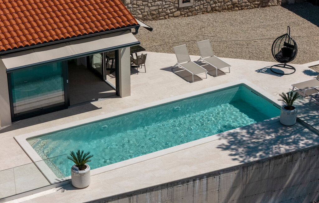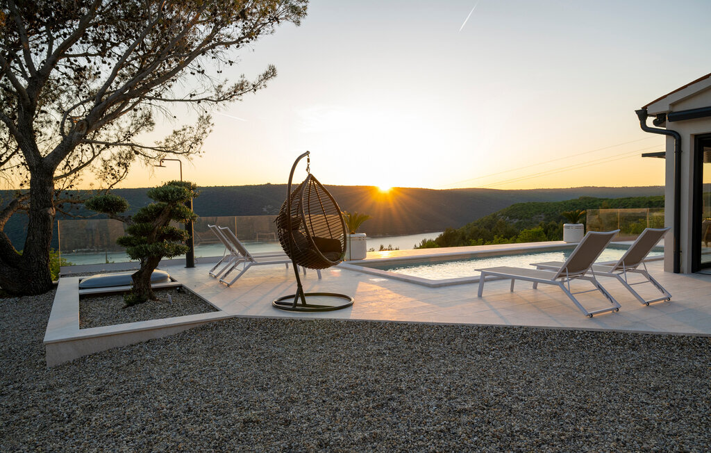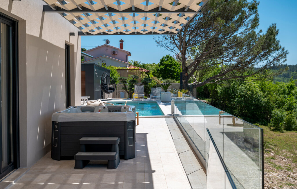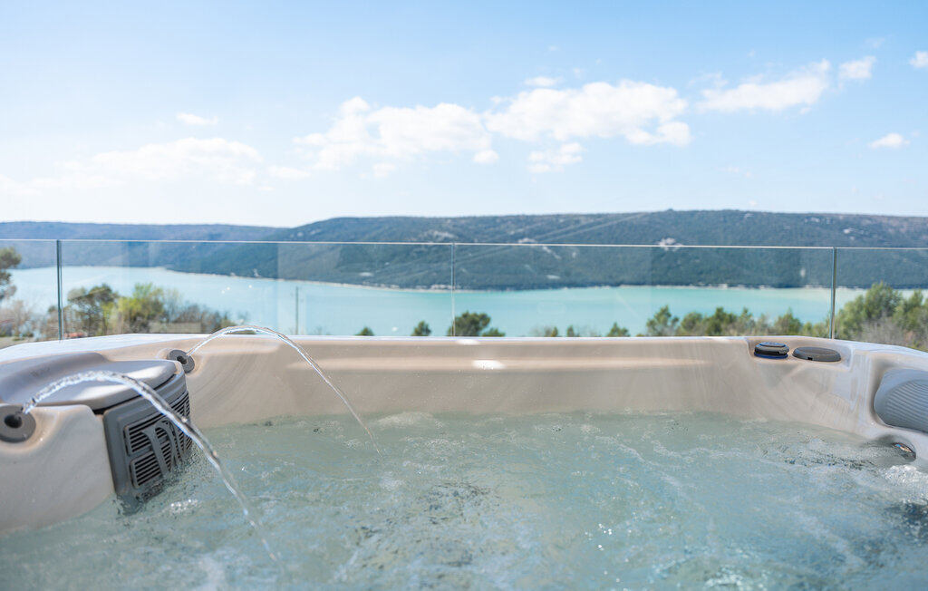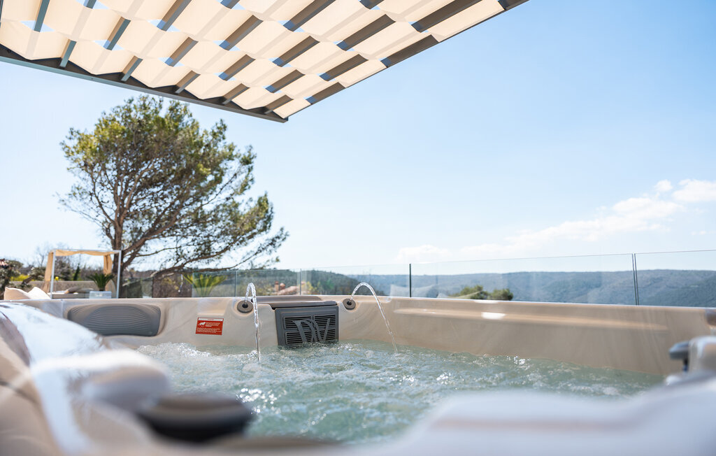 Bien-être à l'extérieur : Location de vacances disposant de chaises-longues et d'un ou plusieurs équipements tels que piscine extérieure, jacuzzi extérieur, lit à baldaquin de jardin etc...