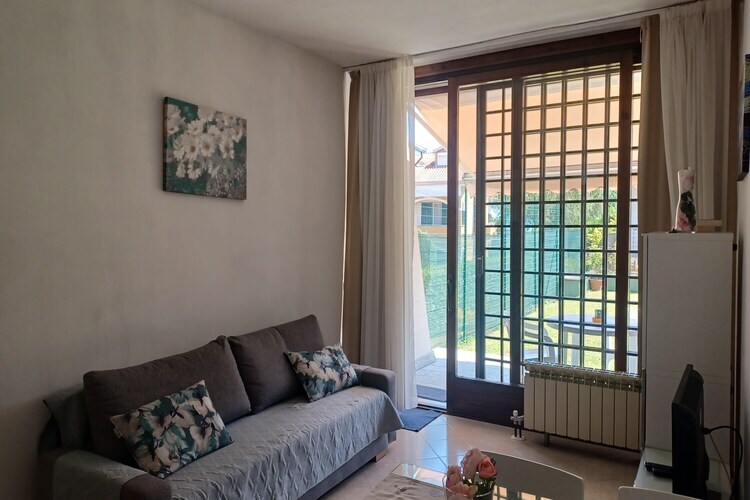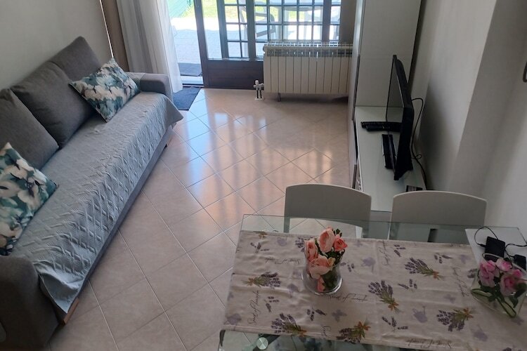 Rez-de-chaussée: (Salle de séjour(coin salon), cuisine ouverte(foyer, four, lave-vaisselle , combinaison réfrigérateur/congélateur, lavabo), chambre(lit double), salle de bains(douche, lavabo, WC, bidet)) jardin, mobilier de jardin, parking, piscine(partagé avec d'autres clients, ouverte de juin jusqu’au août)
