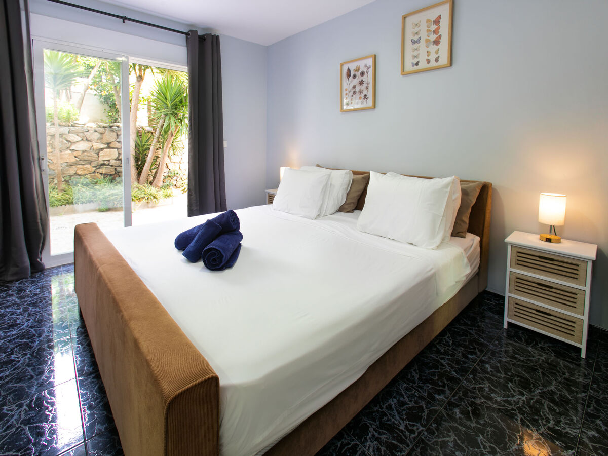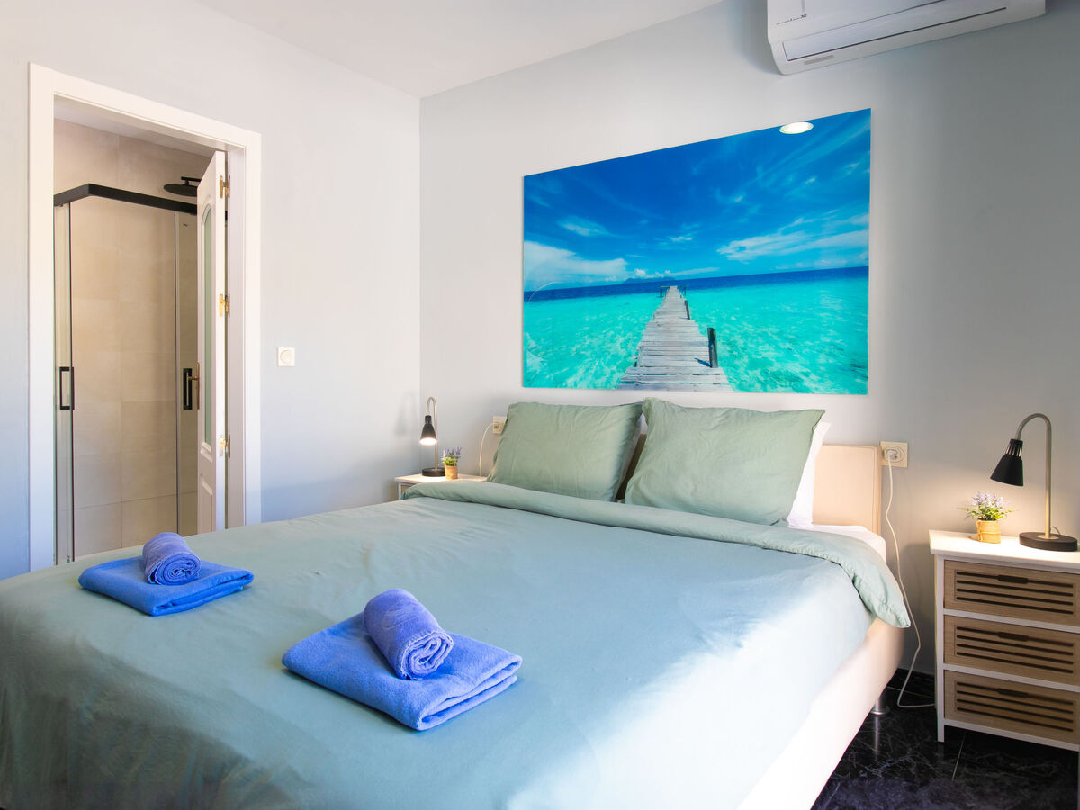 1 chambre avec 1 grand-lit (160 cm, longueur 200 cm), douche/WC, air-conditionné et chauffage à air chaud.