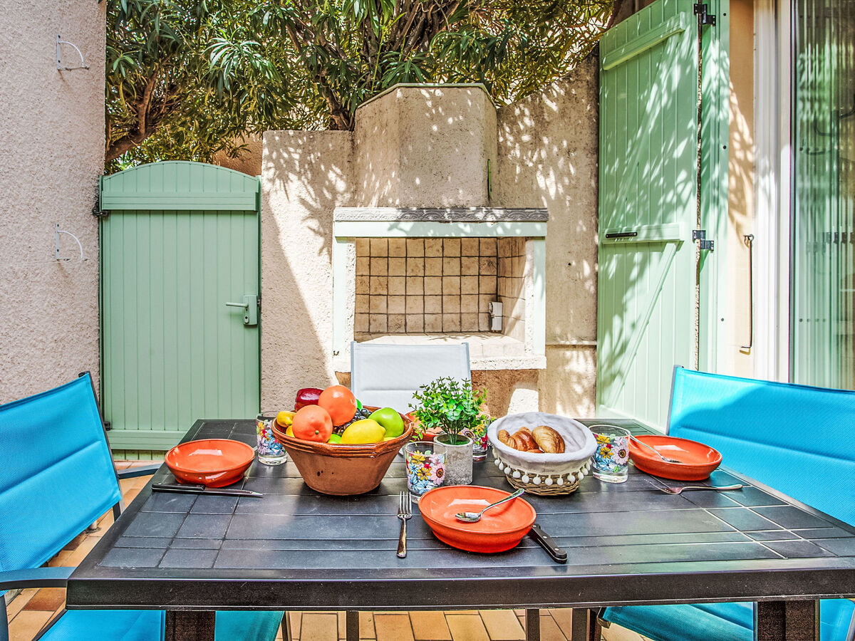 En bordure de la localité, à 500 m du centre de Canet, à 800 m de la mer, à 800 m de la plage.