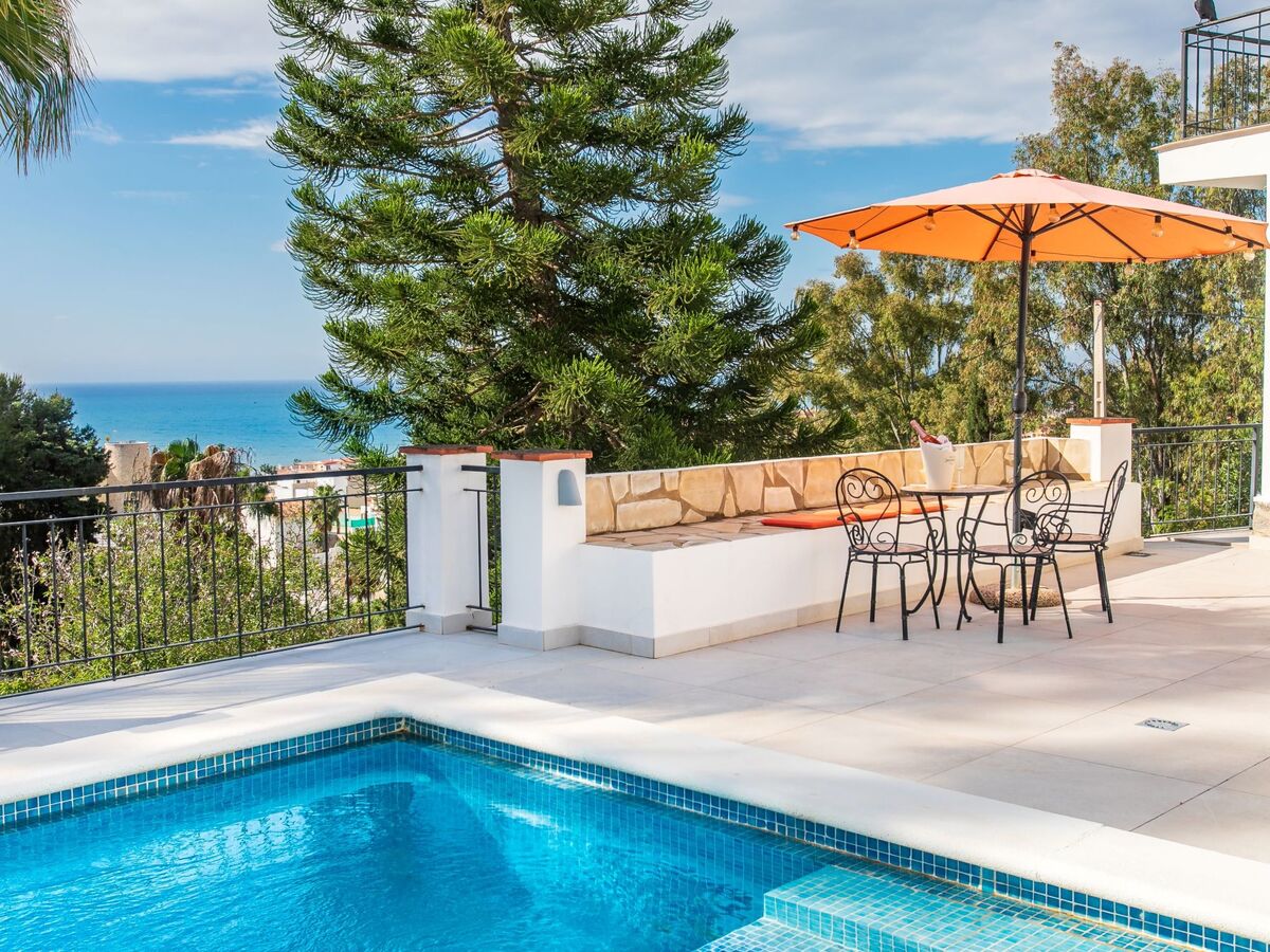 Benajarafe: Belle villa moderne "Villa Esperanza", rénovée en 2020, environnée par les arbres.