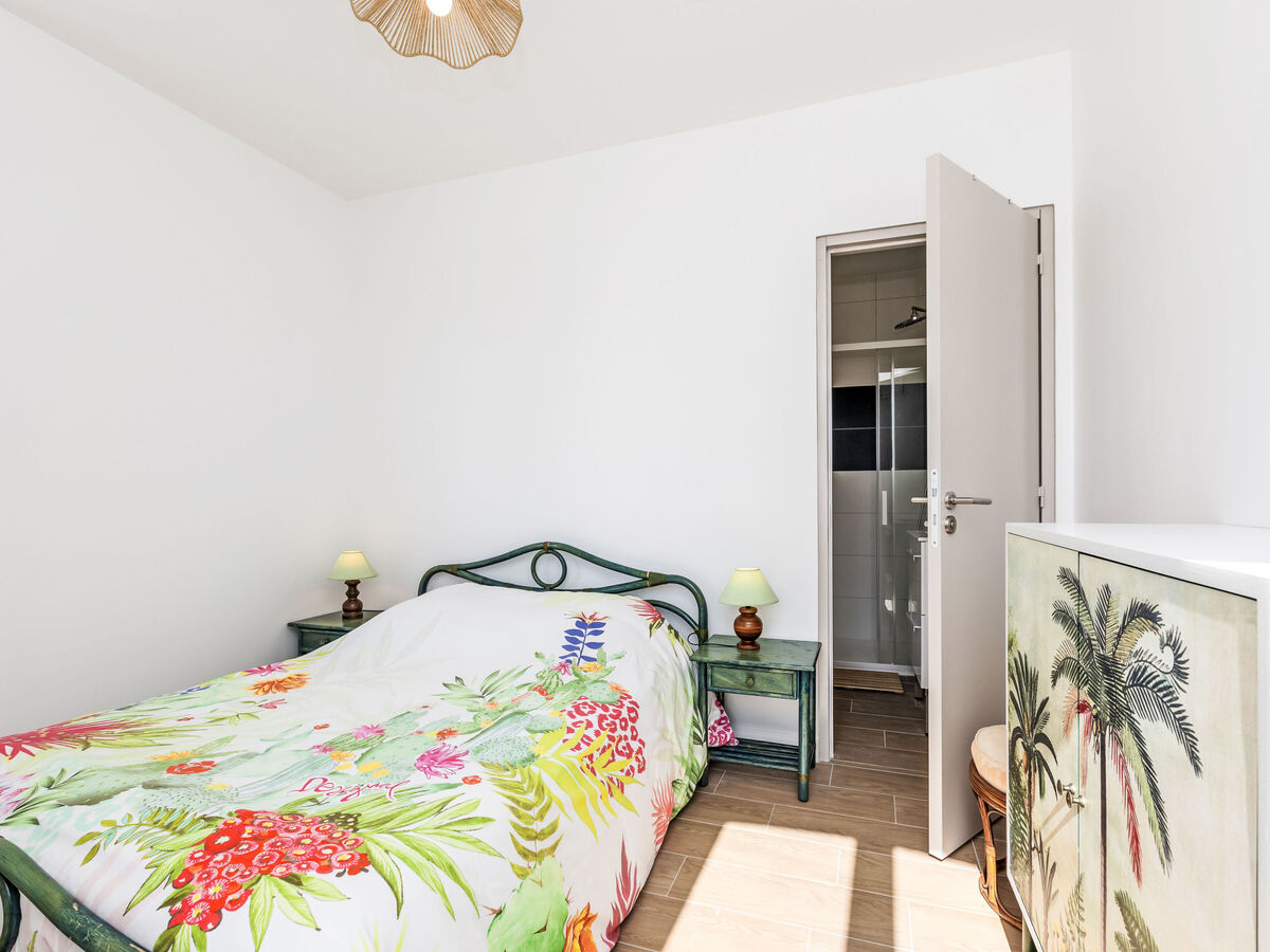 1 chambre avec 1 grand-lit (1 x 140 cm, longueur 190 cm), douche/WC.