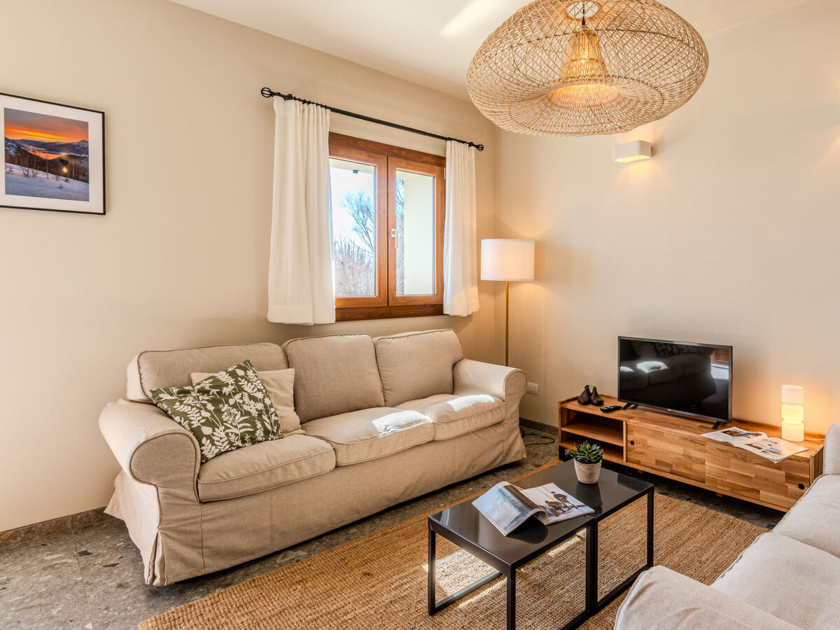 À l'étage inférieur: séjour/salle à manger ouvert avec TV (écran plat).