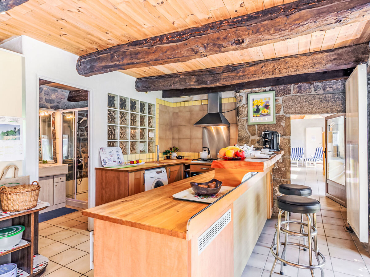 Cuisine ouverte (four, 4 feux, grille-pain, micro-ondes, cafetière électrique).
