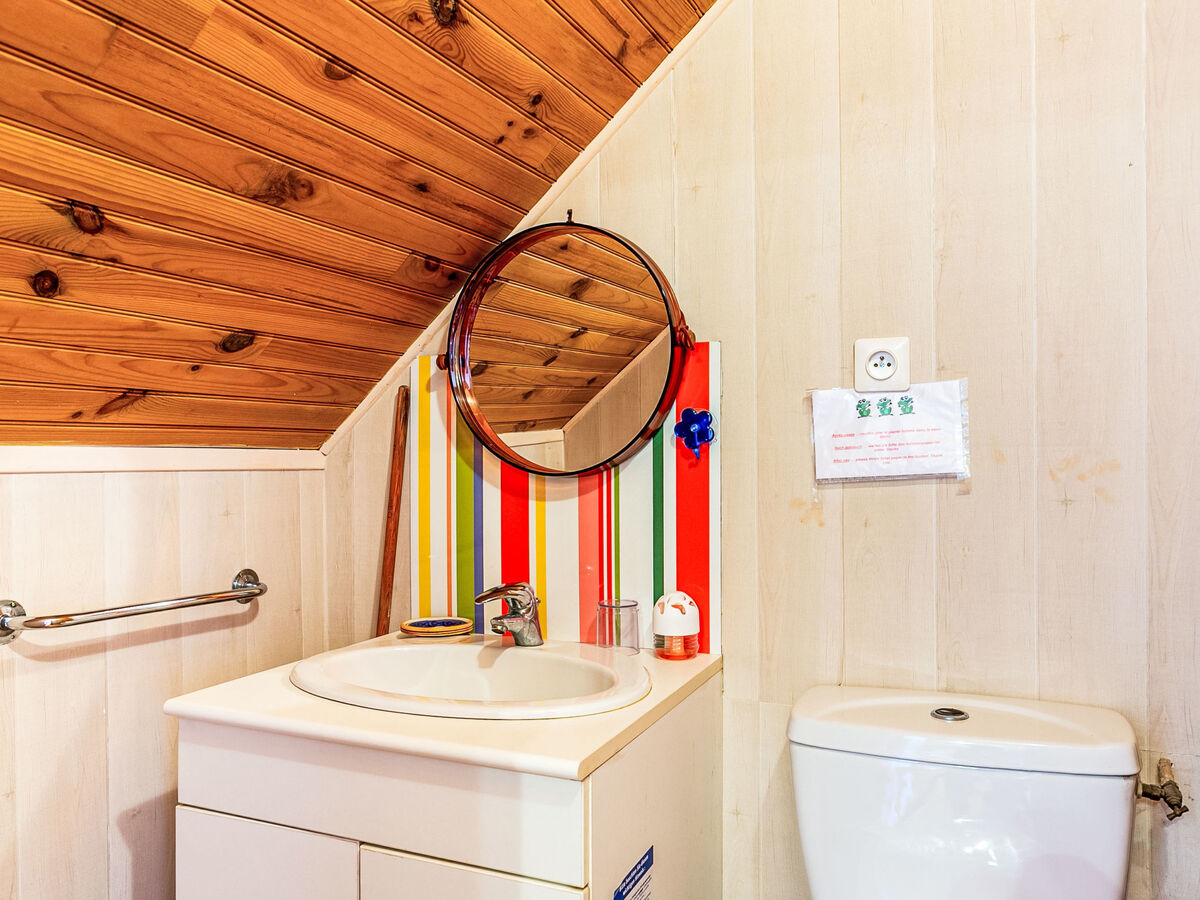 À l'étage supérieur: (escalier raide) 1 chambre, mansardée avec 2 lits (90 cm, longueur 190 cm).