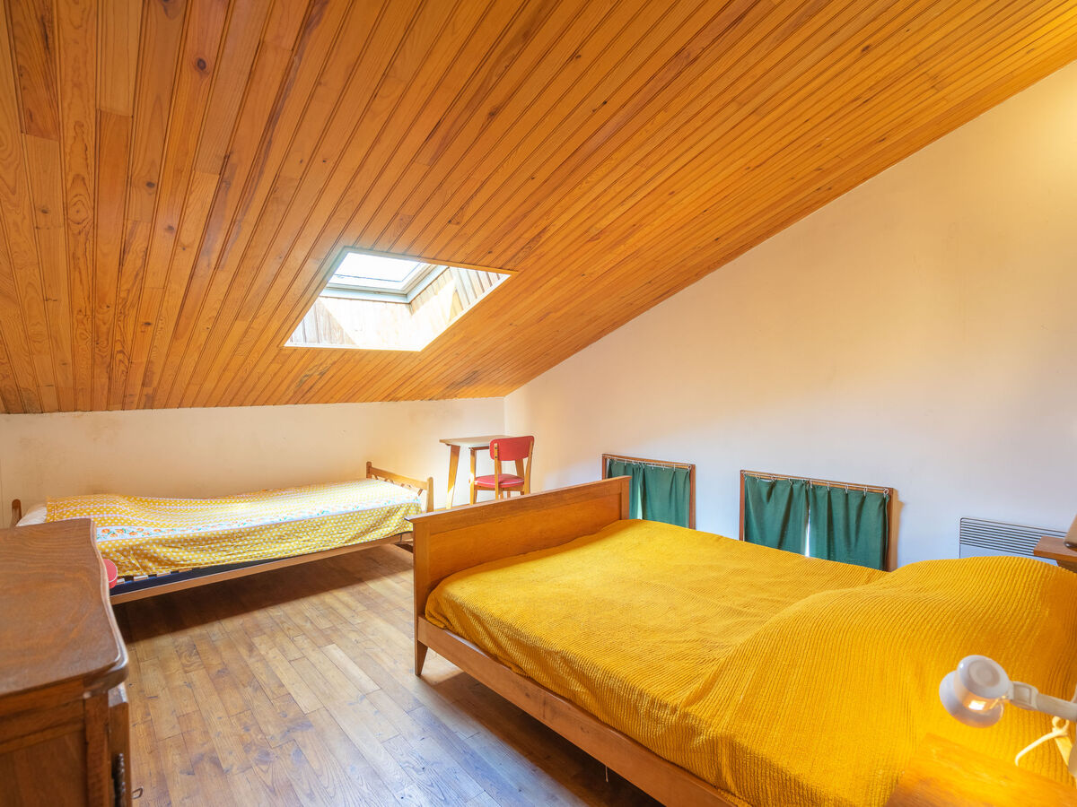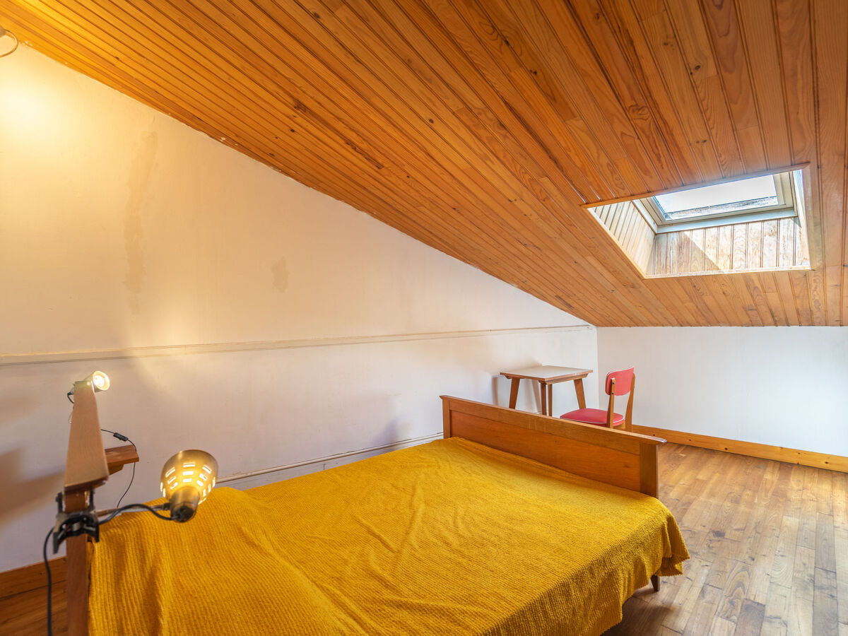 À l'étage supérieur: 1 chambre avec fenêtre sous le toit avec 1 grand-lit (1 x 140 cm, longueur 190 cm).