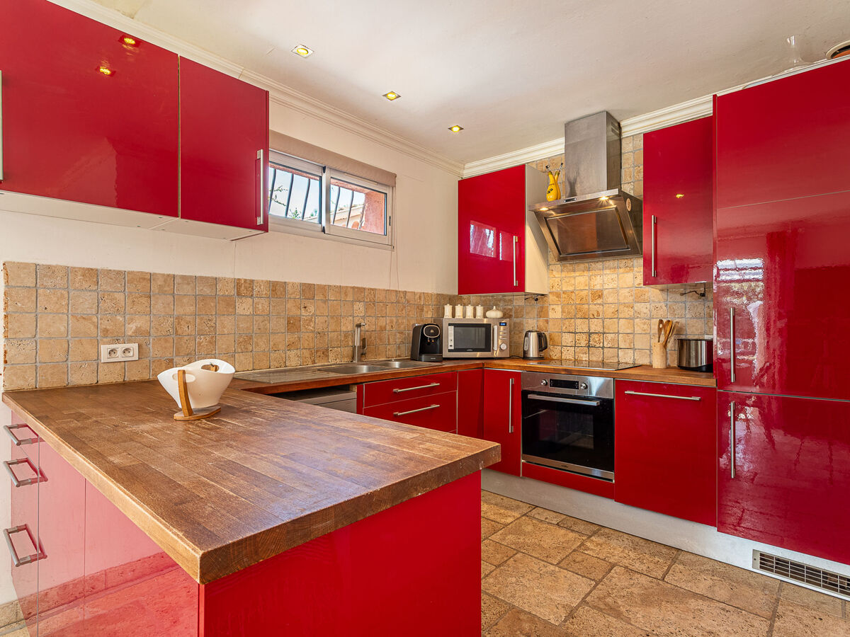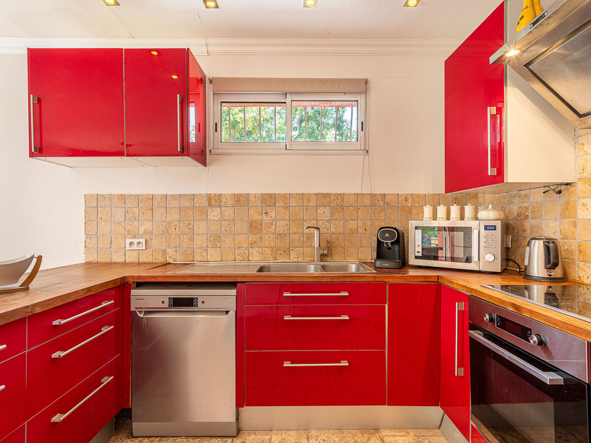 Coin cuisine (four, lave-vaisselle, 4 plaques vitrocéramiques, grille-pain, bouilloire électrique, micro-ondes, cafetière électrique).