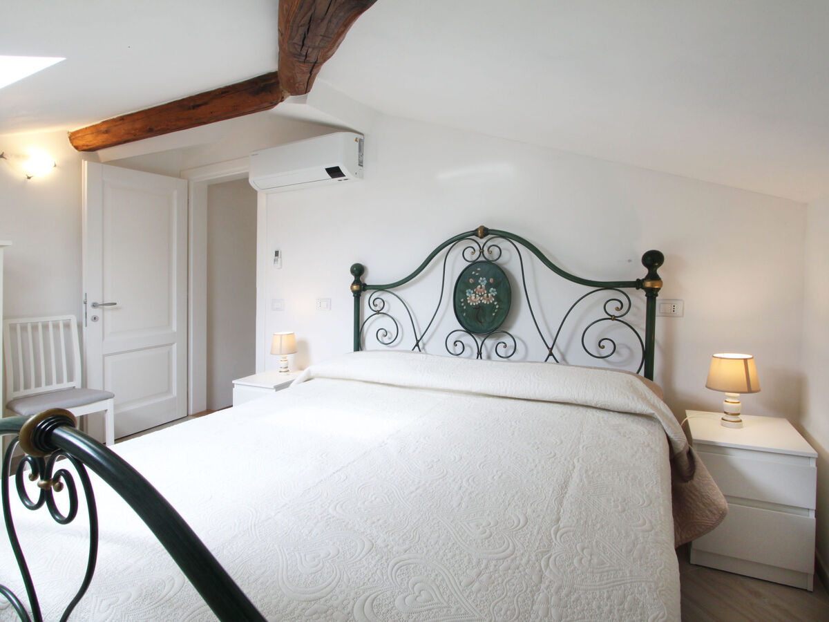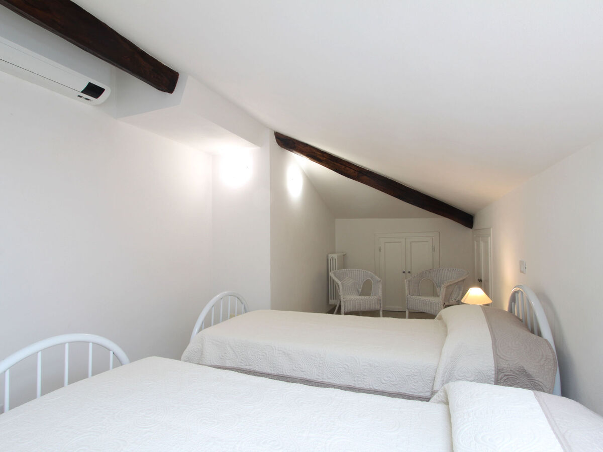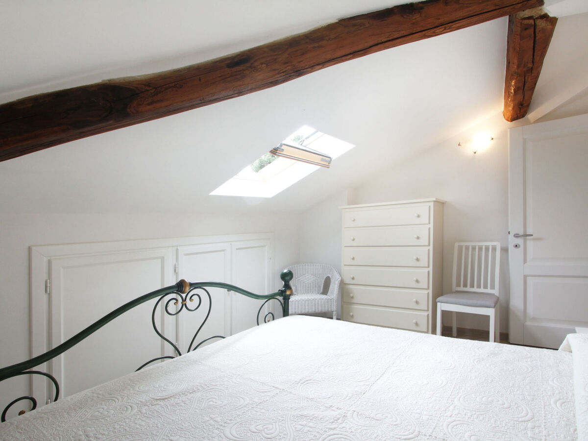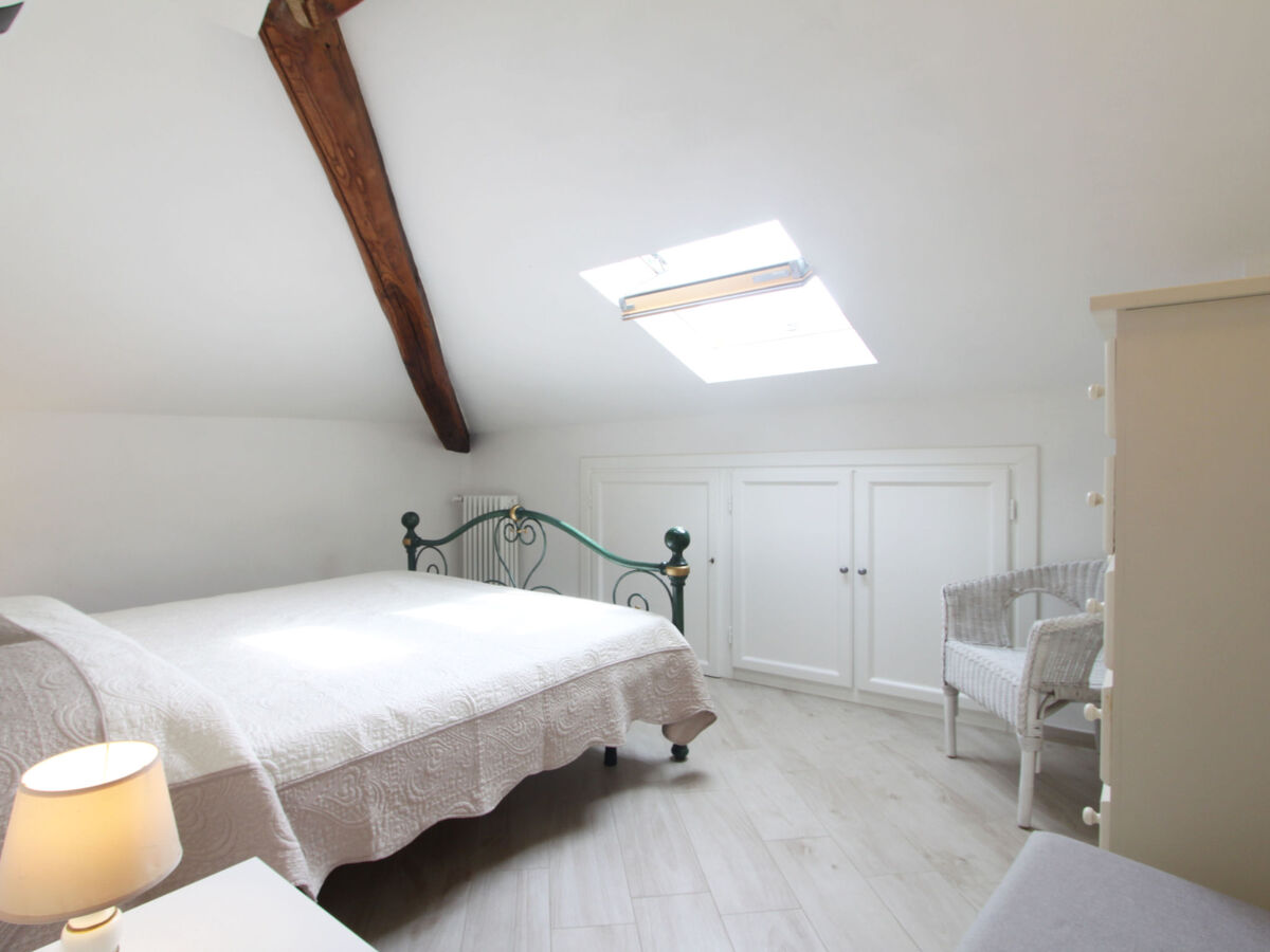 À l'étage supérieur: 1 chambre double, mansardée avec air-conditionné.
