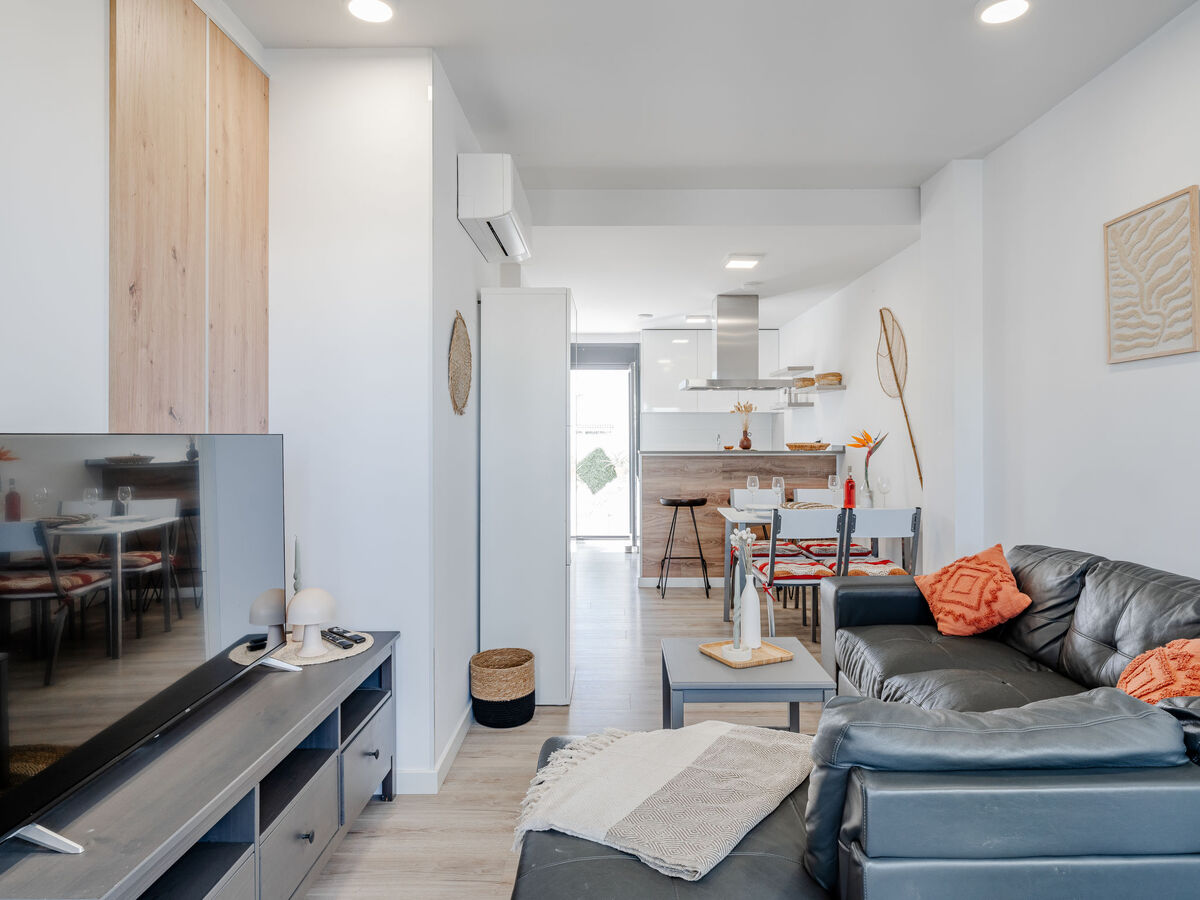 Spacieux et clair, aménagement très agréable et de style: séjour/salle à manger avec TV (satellite), air-conditionné et chauffage à air chaud.