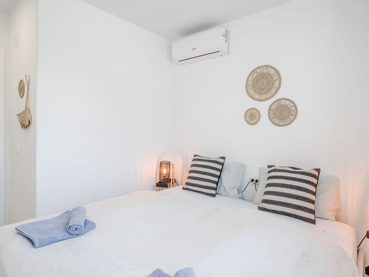 1 chambre avec 1 grand-lit (150 cm, longueur 200 cm), douche/WC, air-conditionné et chauffage à air chaud.