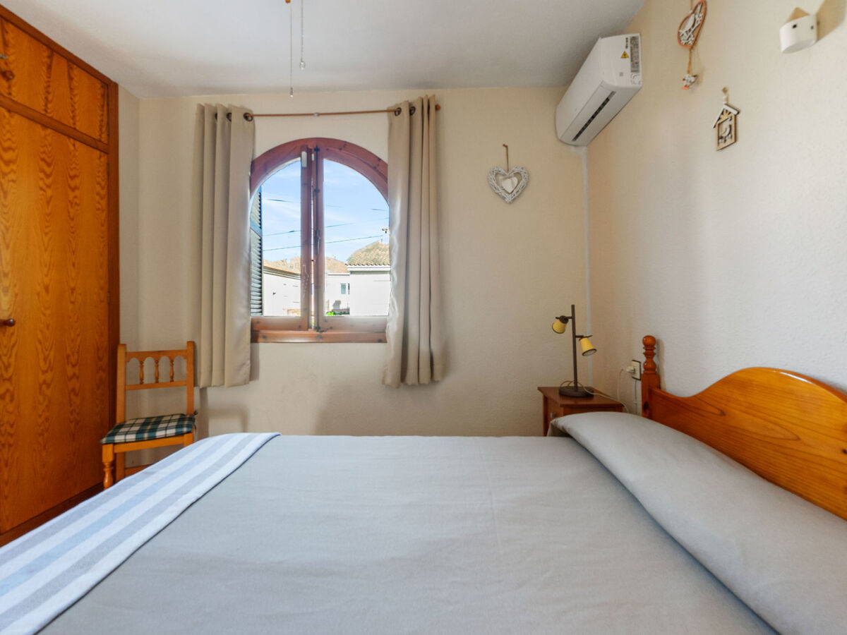 À l'étage supérieur: 1 chambre avec 1 grand-lit (135 cm, longueur 190 cm), air-conditionné, ventilateur et chauffage à air chaud.