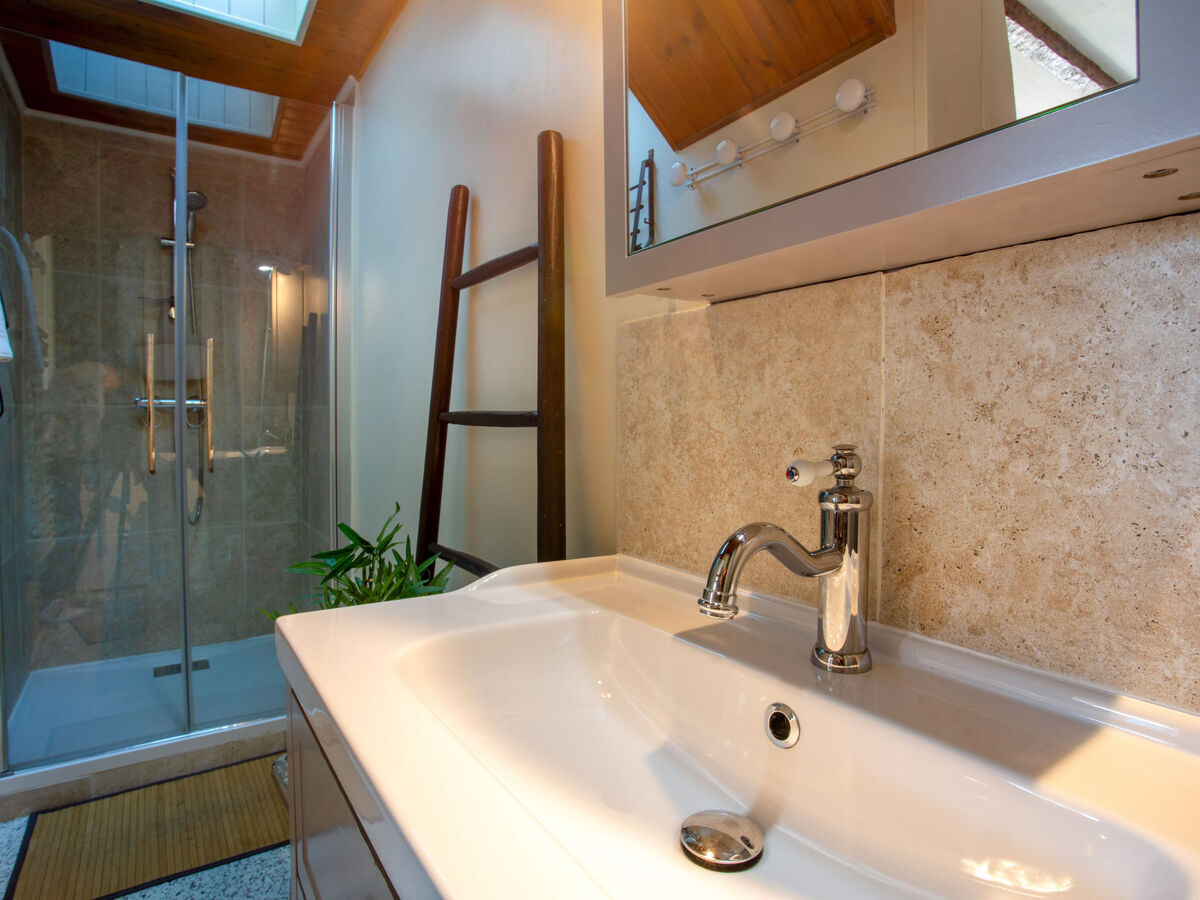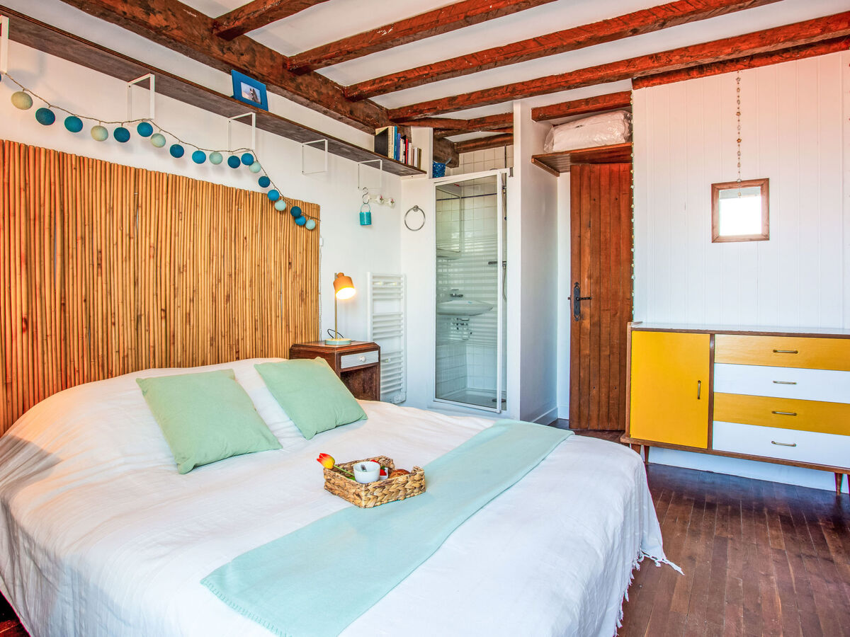 À l'étage supérieur: 1 chambre avec 1 grand-lit (2 x 80 cm, longueur 190 cm), douche.