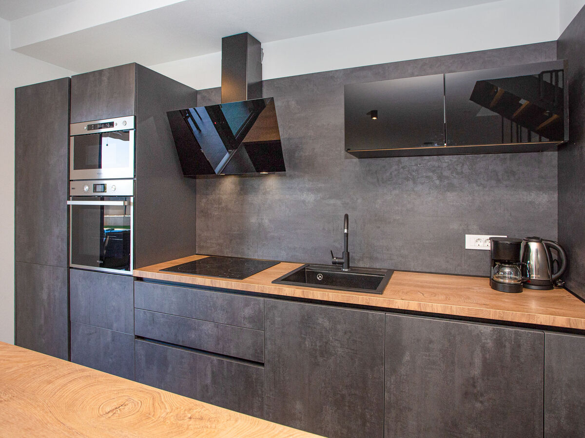Cuisine ouverte (four, lave-vaisselle, 4 plaques vitrocéramiques, grille-pain, bouilloire électrique, micro-ondes, congélateur, cafetière électrique).
