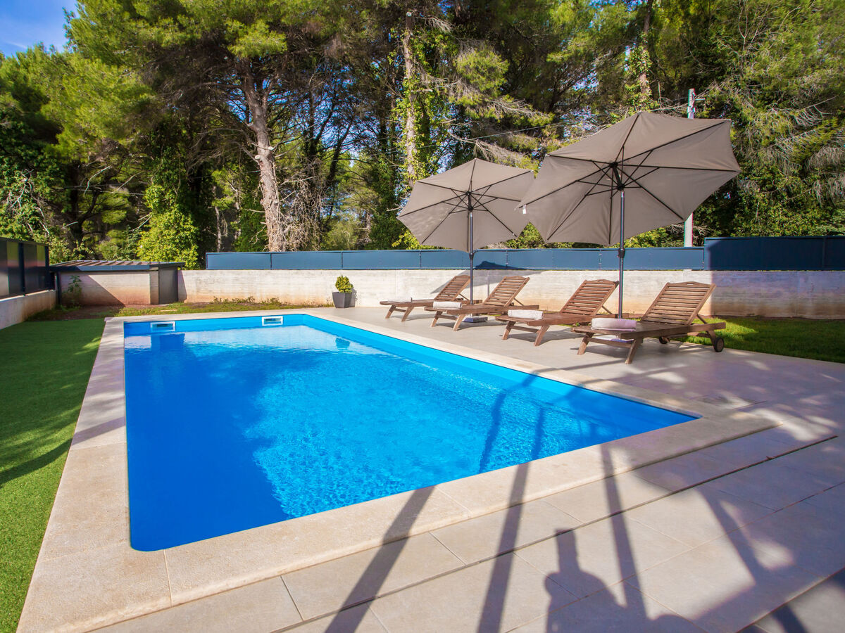 A usage privé: terrain 600 m2 (clôturé) avec pelouse, piscine rectangulaire, chauffée (34 m2, profondeur 140 cm, disponibilité saisonnière: 15.Avr.
