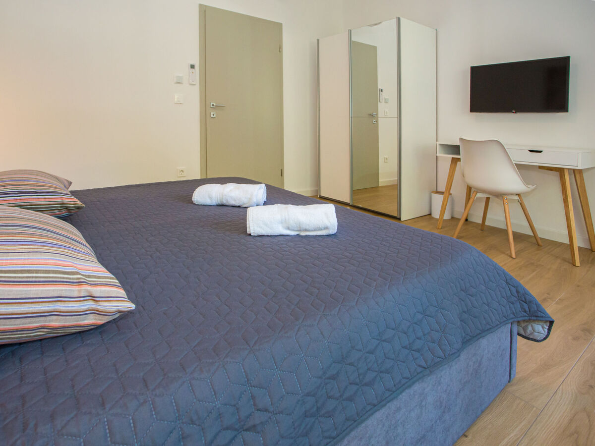 1 chambre avec 1 grand-lit (180 cm, longueur 200 cm), douche/bidet/WC, TV (satellite) et air-conditionné.