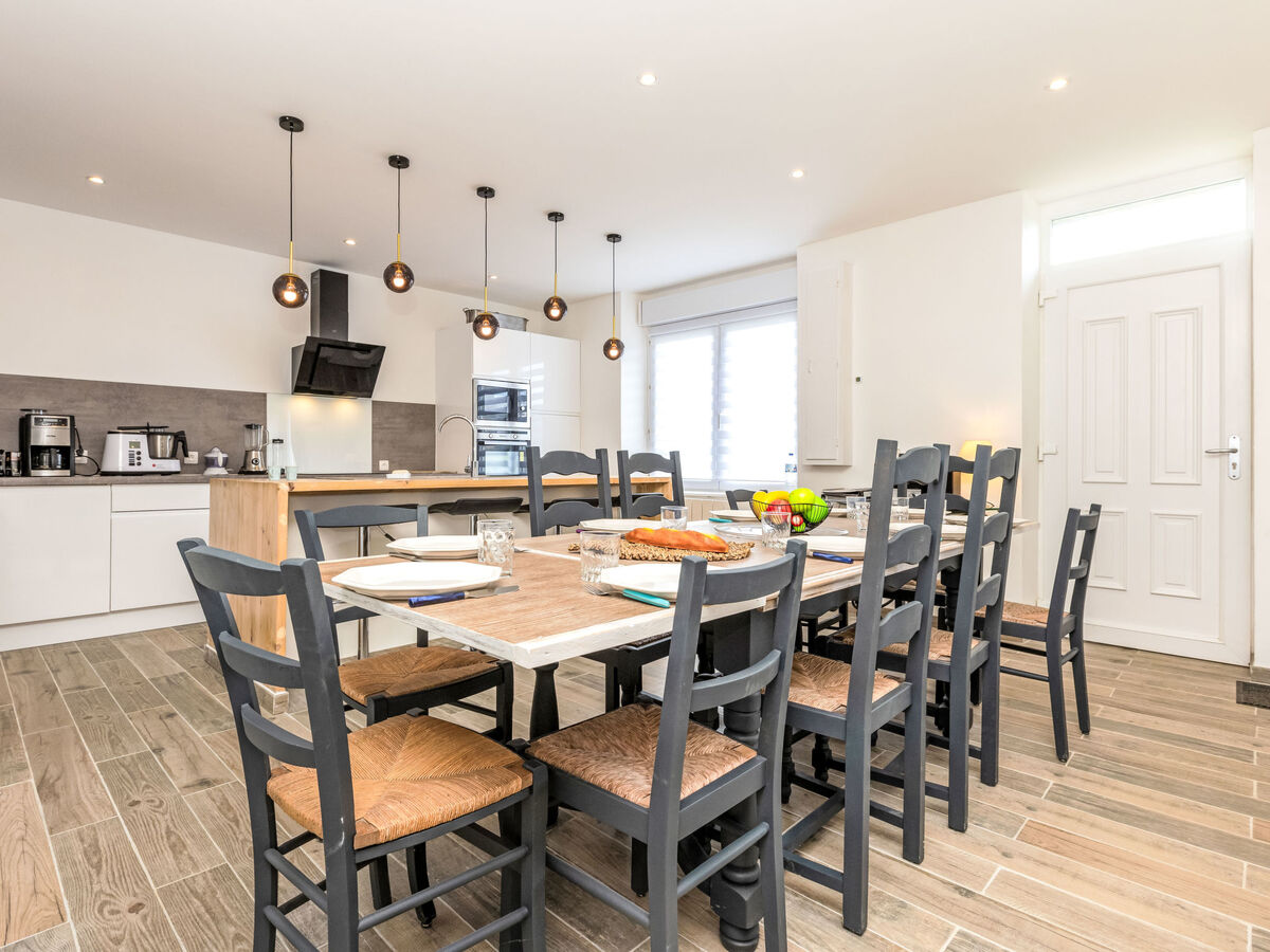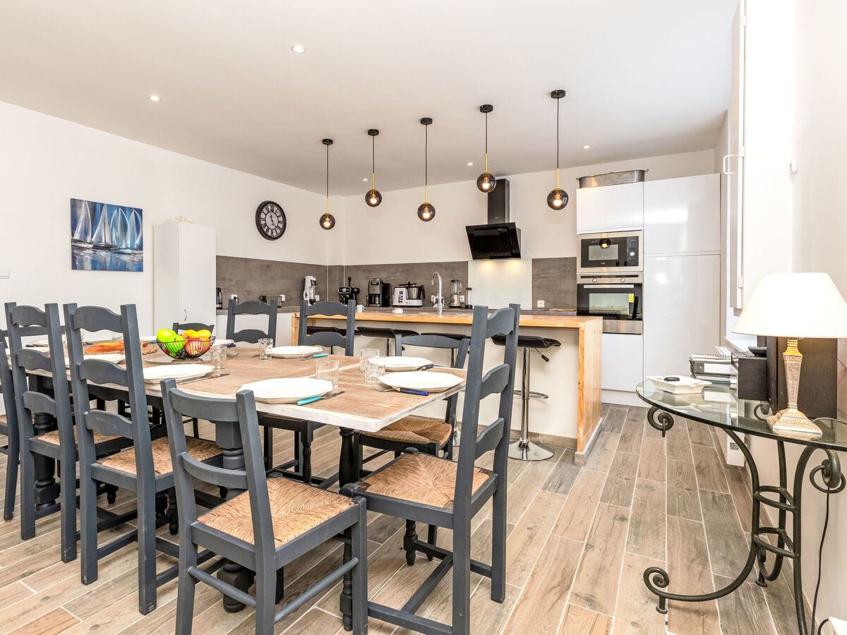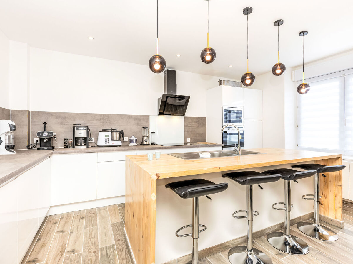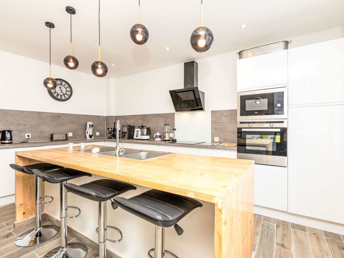 Grande cuisine ouverte (four, lave-vaisselle, 4 plaques à induction, grille-pain, bouilloire électrique, micro-ondes, cafetière électrique, ilot de cuisine).