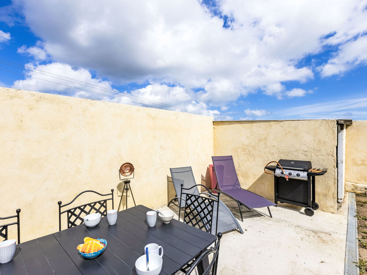 Terrasse (30 m2), meubles de jardin, barbecue, place de parking sur le terrain.
