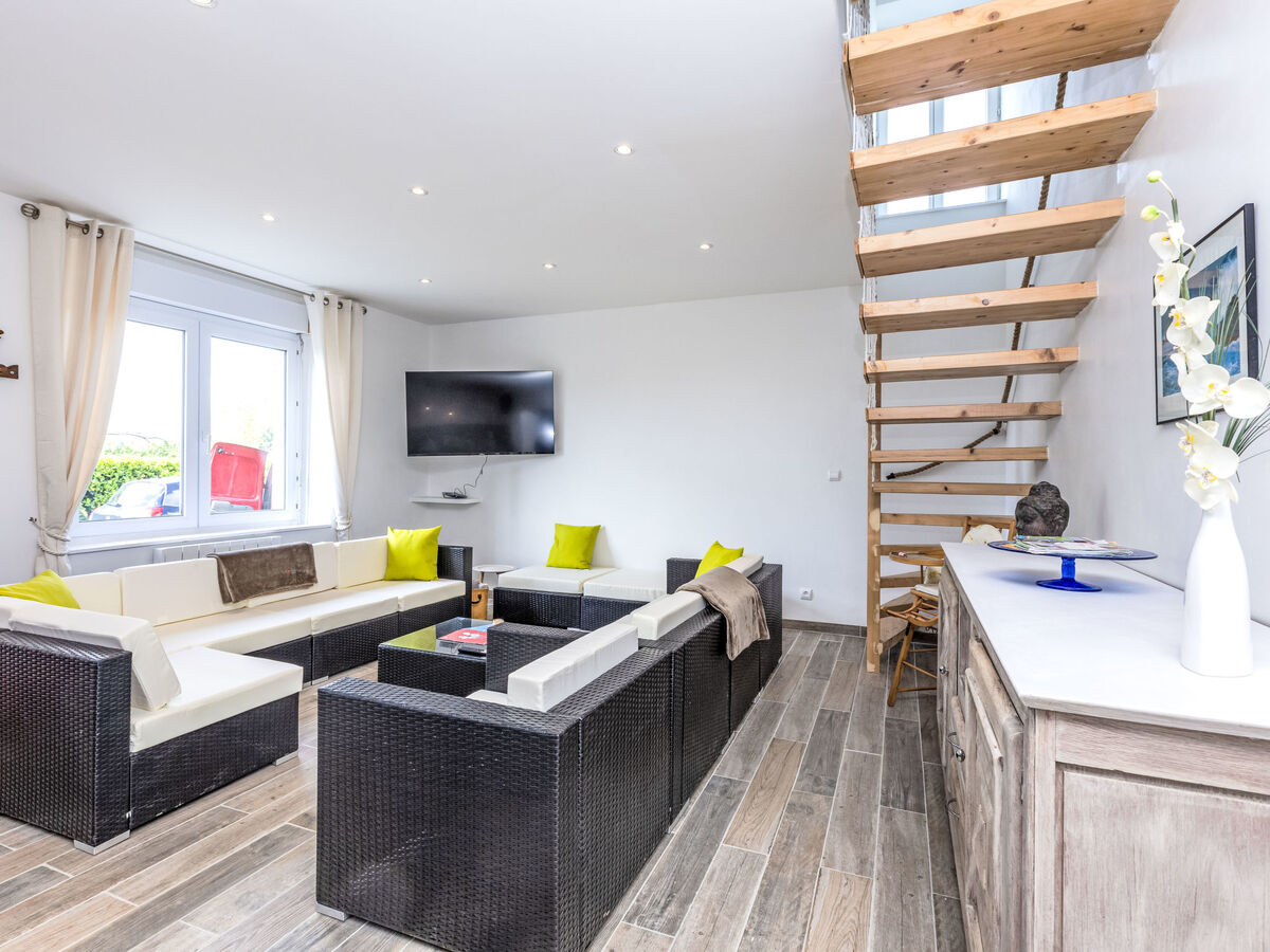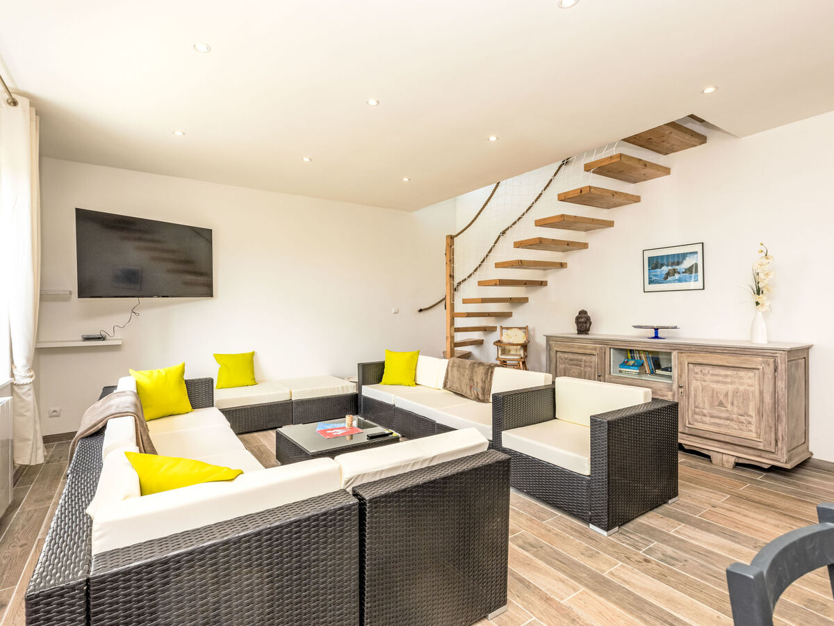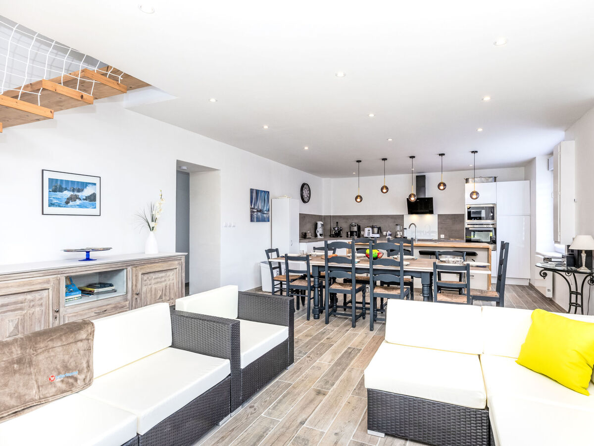 Aménagement confortable et de bon goût: grand séjour/salle à manger avec TV (écran plat).