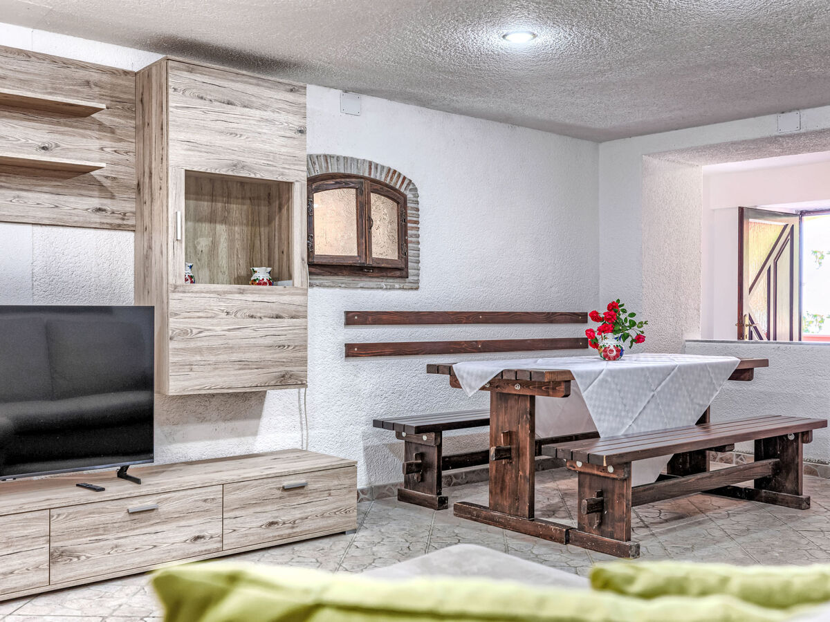 Séjour/salle à manger avec cheminée (uniquement à titre de décoration), TV (satellite).