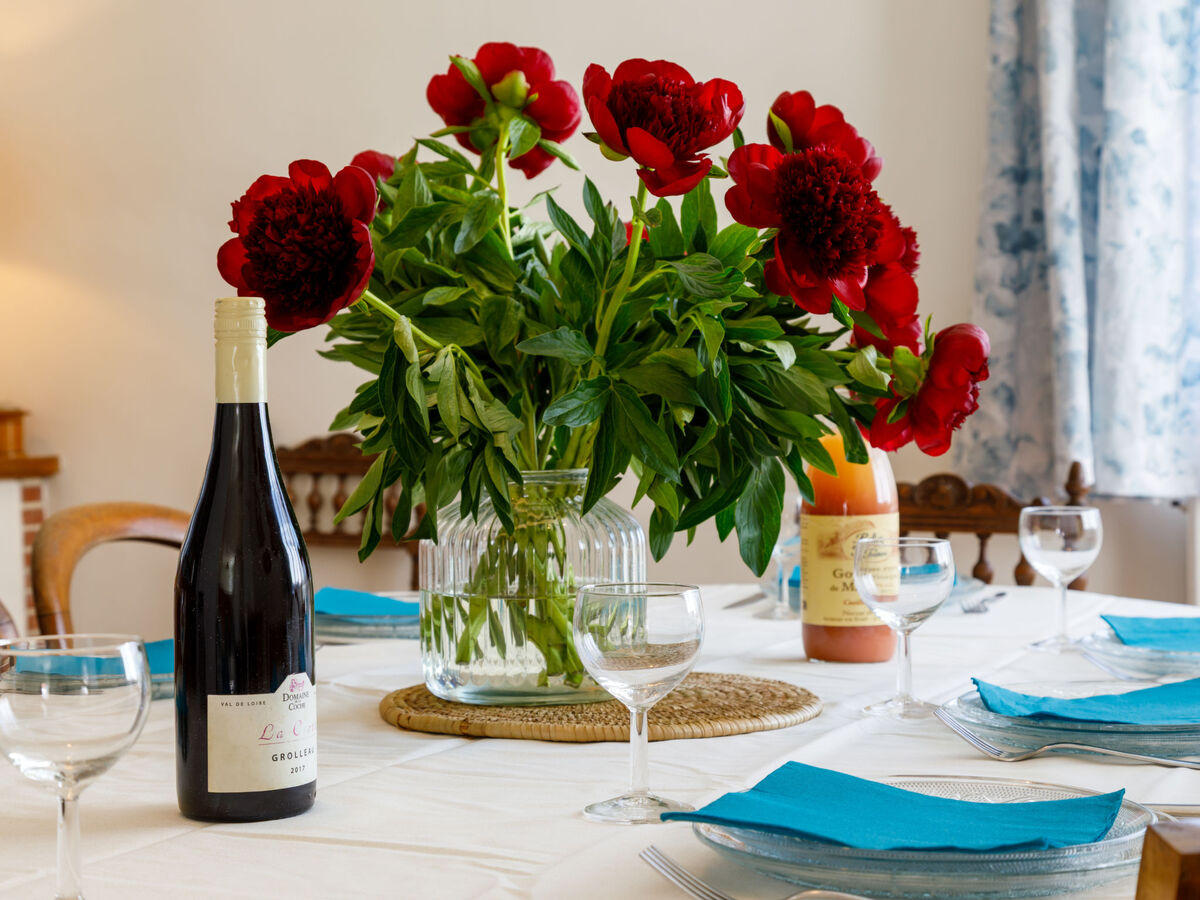 Aménagement très confortable: salle à manger avec table pour les repas.