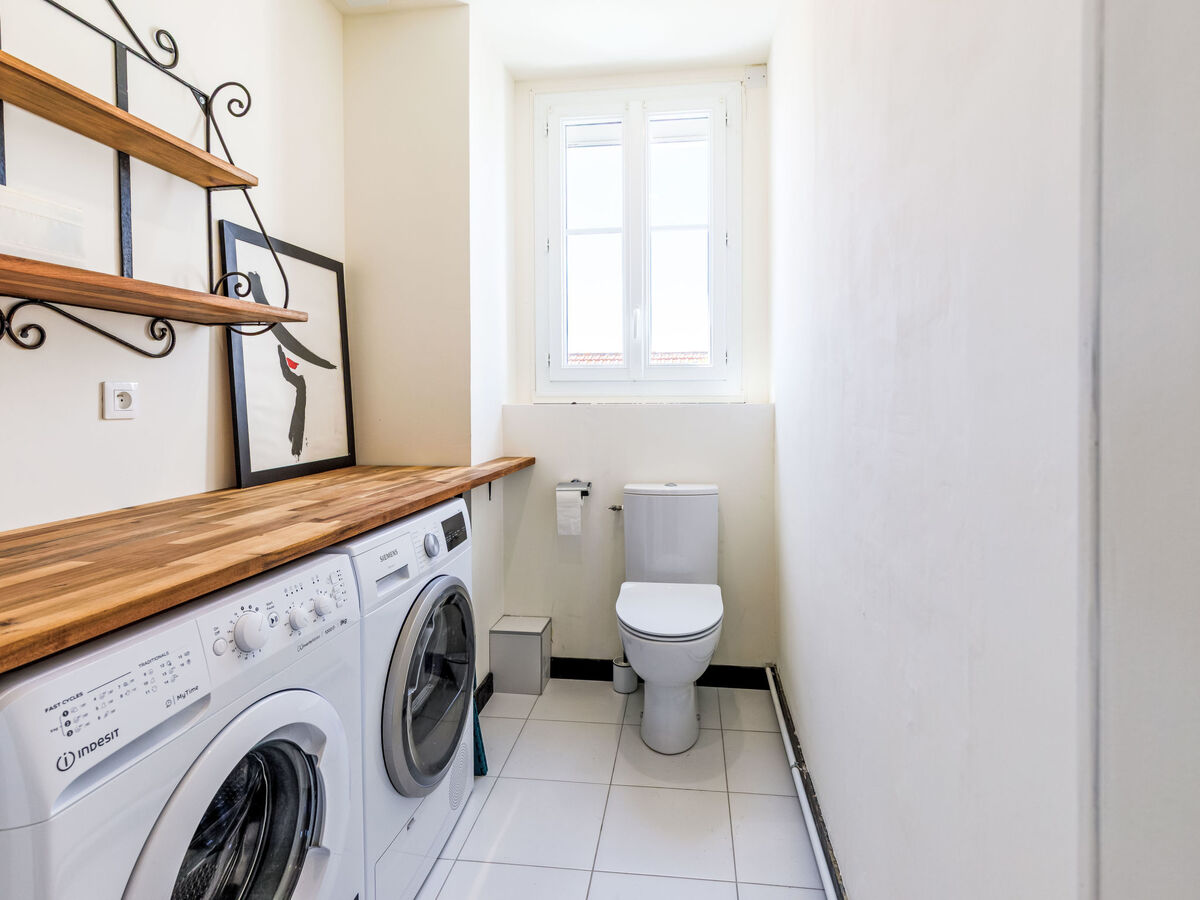 A disposition: lave-linge, sèche-linge, fer à repasser, chaise haute pour enfant, lit bébé jusqu'à 2 ans, sèche-cheveux.