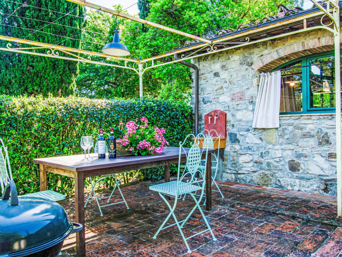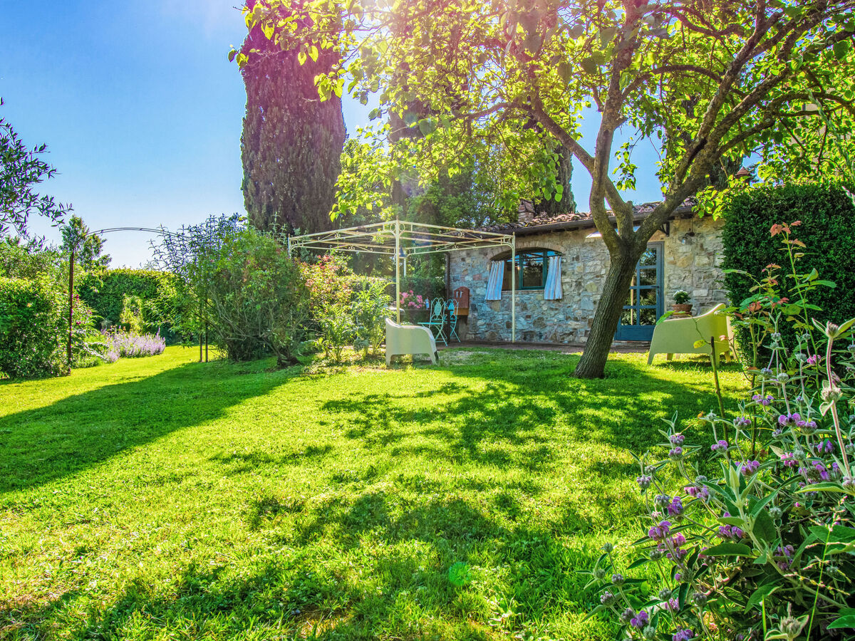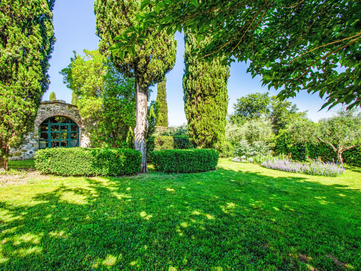 Magnifique grange en pierre, située dans un jardin bien entretenu et surplombant la campagne toscane.