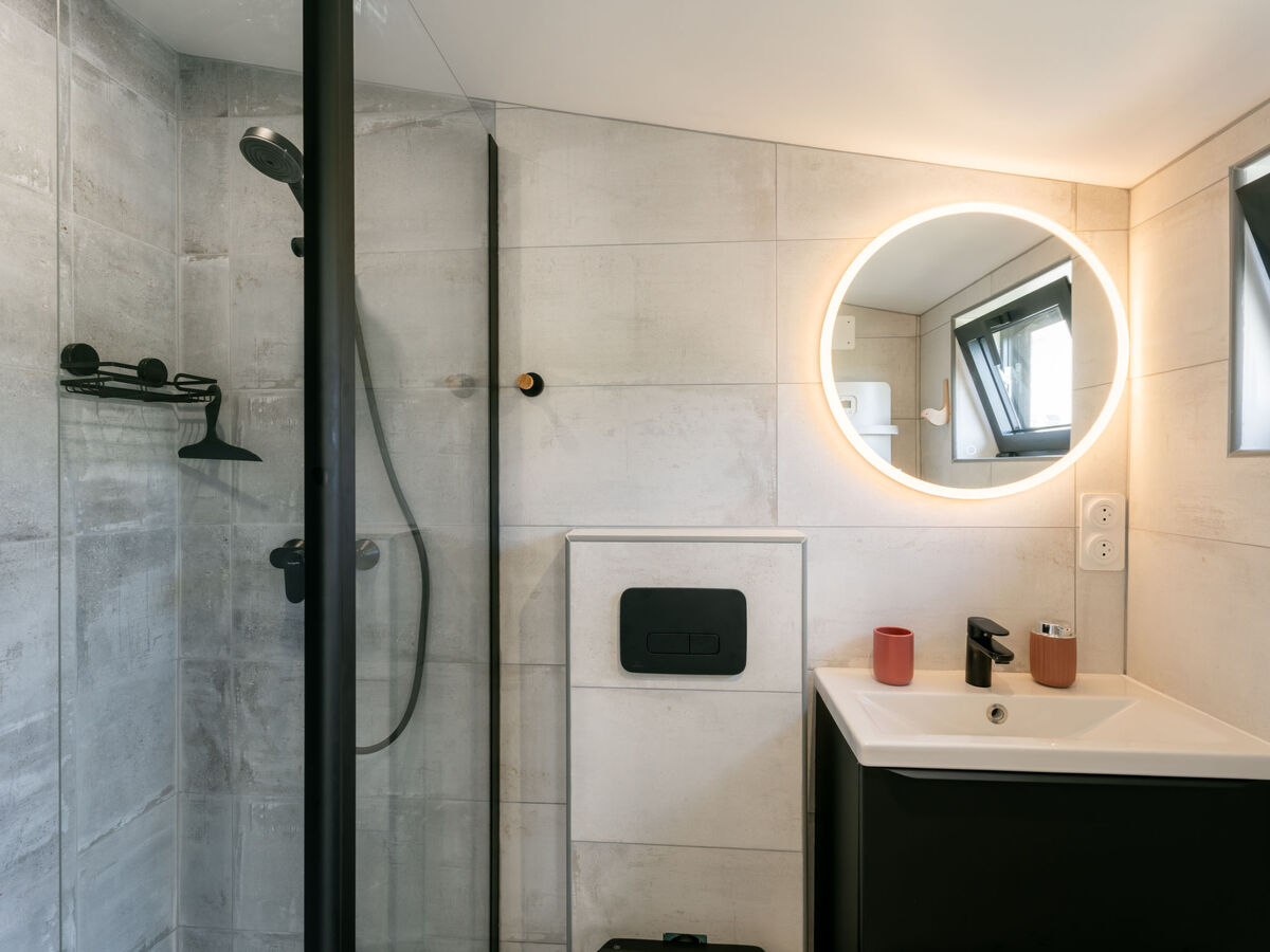 À l'étage supérieur: (escalier raide) 1 chambre avec 2 lits (90 cm, longueur 190 cm), 1 divan-lit (90 cm, longueur 190 cm).