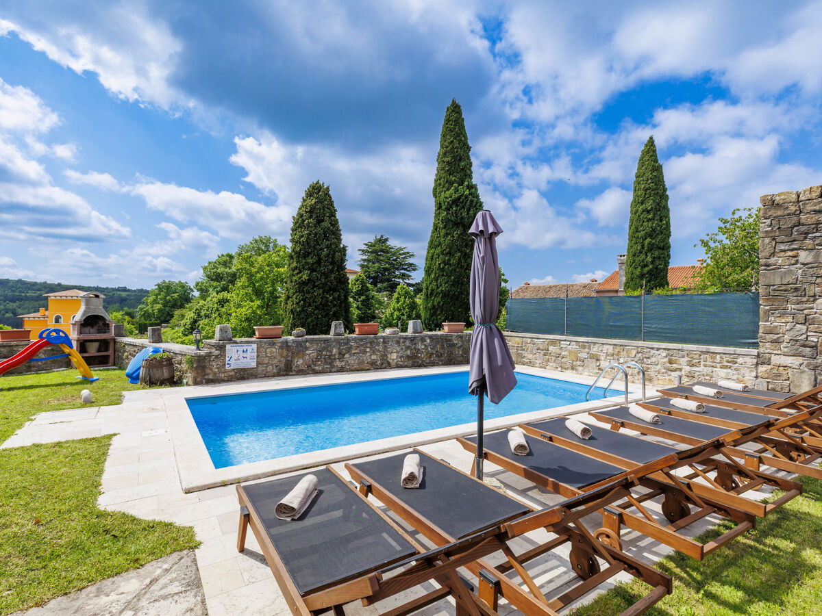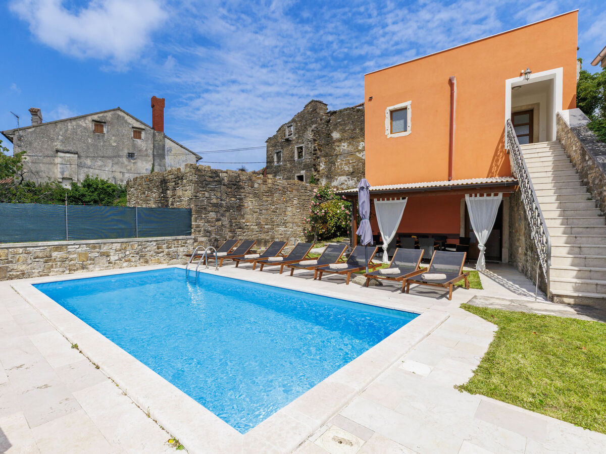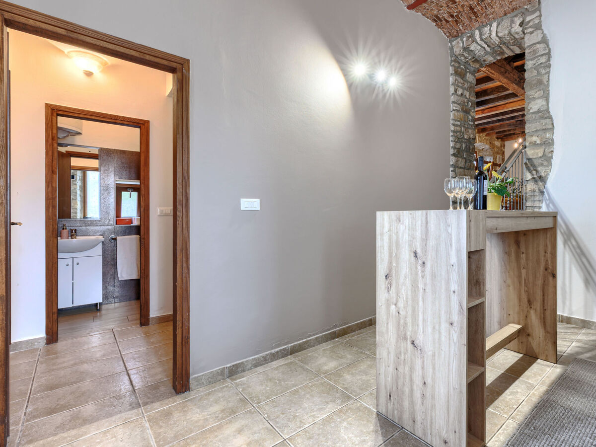 À 200 m du centre d'Oprtalj, à 10 km du centre de Motovun, situation ensoleillée, surélevée sur un versant, à 25 km de la mer, dans une impasse.